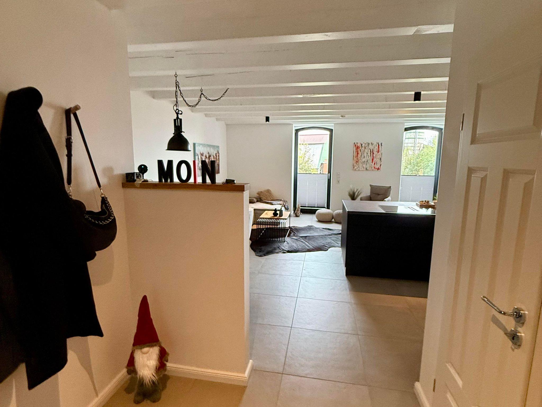 Unsere Wohnung 7 Frieda, die nach unserer Tochter benannt wurde, ist die größte der 15 Wohnungen im ehemaligen Scheunentrakt des Gulfhofes im idyllischen Warftendorf Rysum.