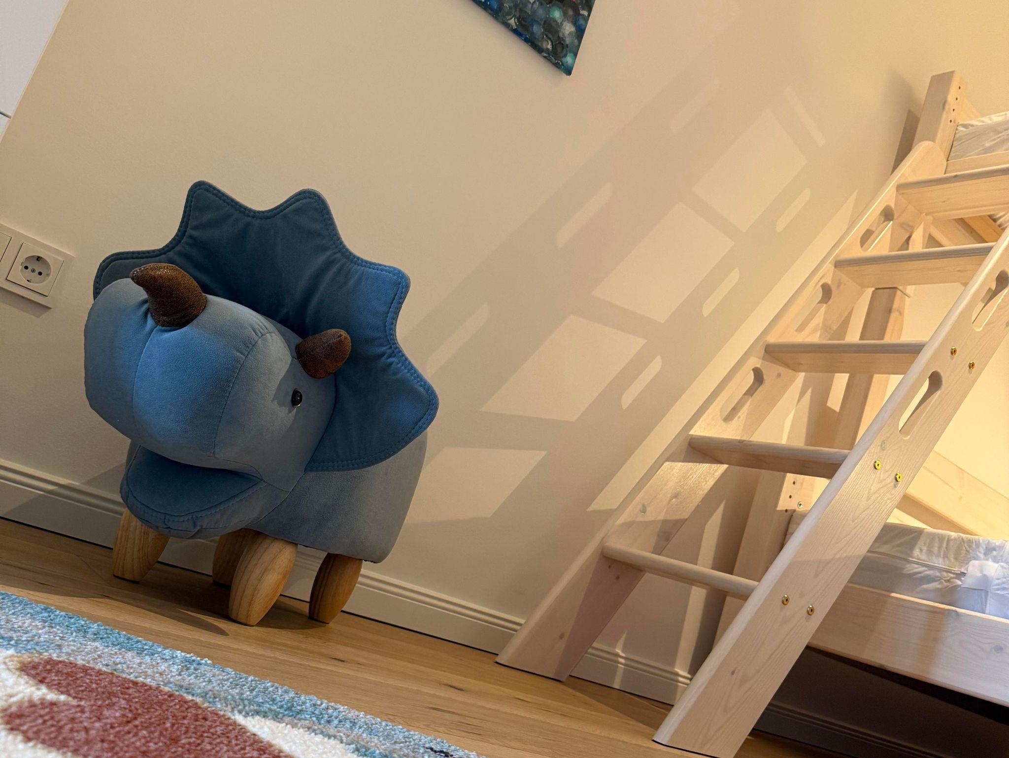 Zusätzlich verfügt die Wohnung über eine Kinderausstattung mit u.a. Kindergeschirr, Babyreisebett, mobiler Rausfallschutz für Betten (lässt sich auf 106 cm verlängern), Kinderhochstuhl, 2-stufiger Tritthocker, Treppensicherung und Nachtlicht. Eine kleine Auswahl an Kinderbüchern und Spielzeug ist ebenfalls vorhanden.