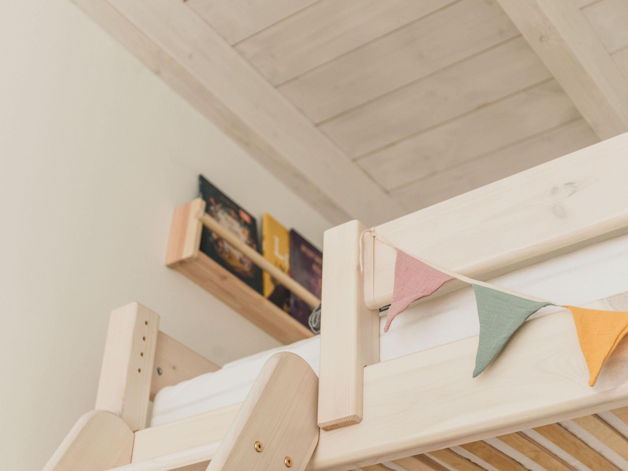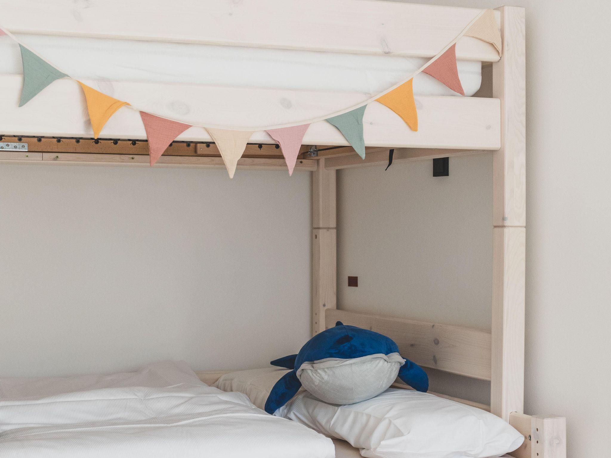 ? Ein Hochbett mit einer 1,40 m breiten Matratze unten und einer 1,20 m breiten Matratze oben, auf dem vier Kinder oder drei Erwachsene bequem Platz finden