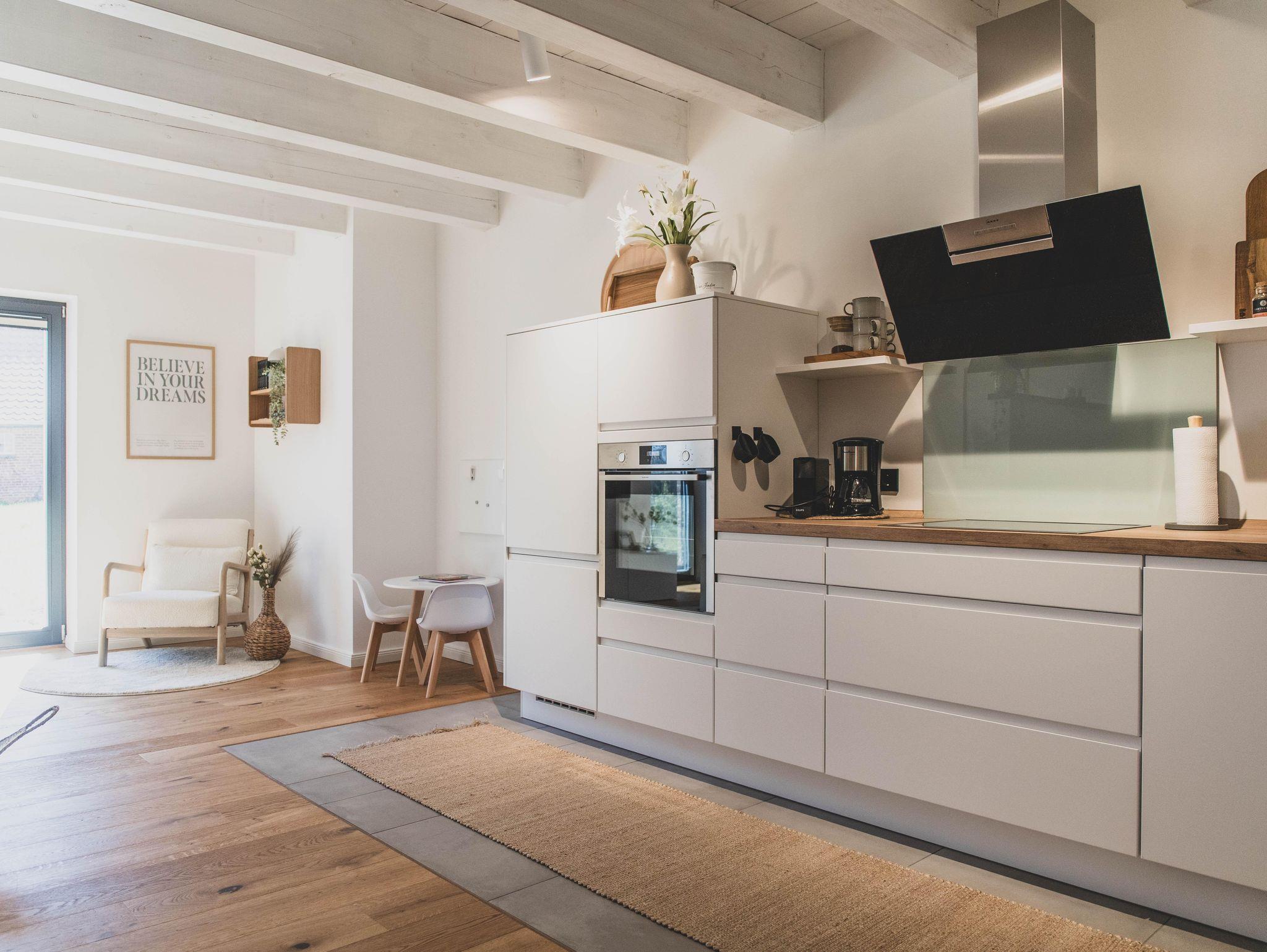 Die moderne und gut ausgestattete Küche lädt zum gemeinsamen Kochen ein. Ob mit der Nespresso-Maschine oder dem Filterkaffee – starten Sie den Tag ganz nach Ihrem Geschmack! Neben sämtlichen Küchenutensilien steht Ihnen alles zur Verfügung, um sich rundum wohlzufühlen.
