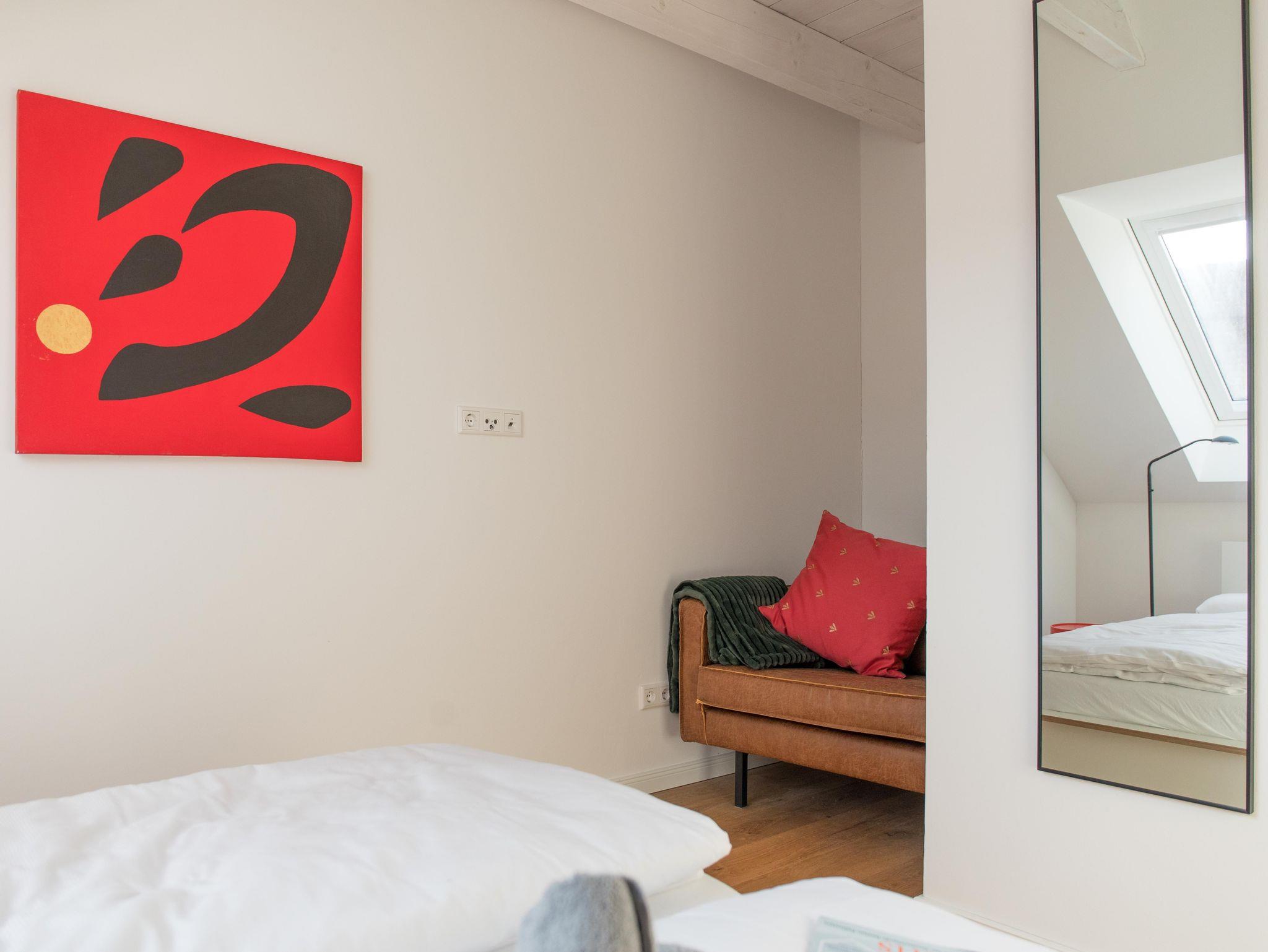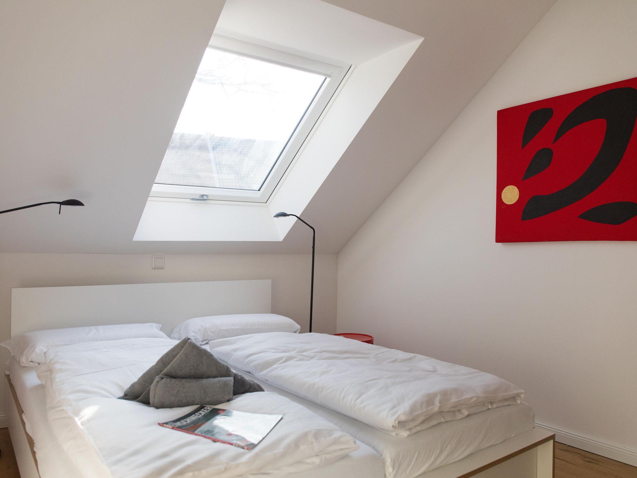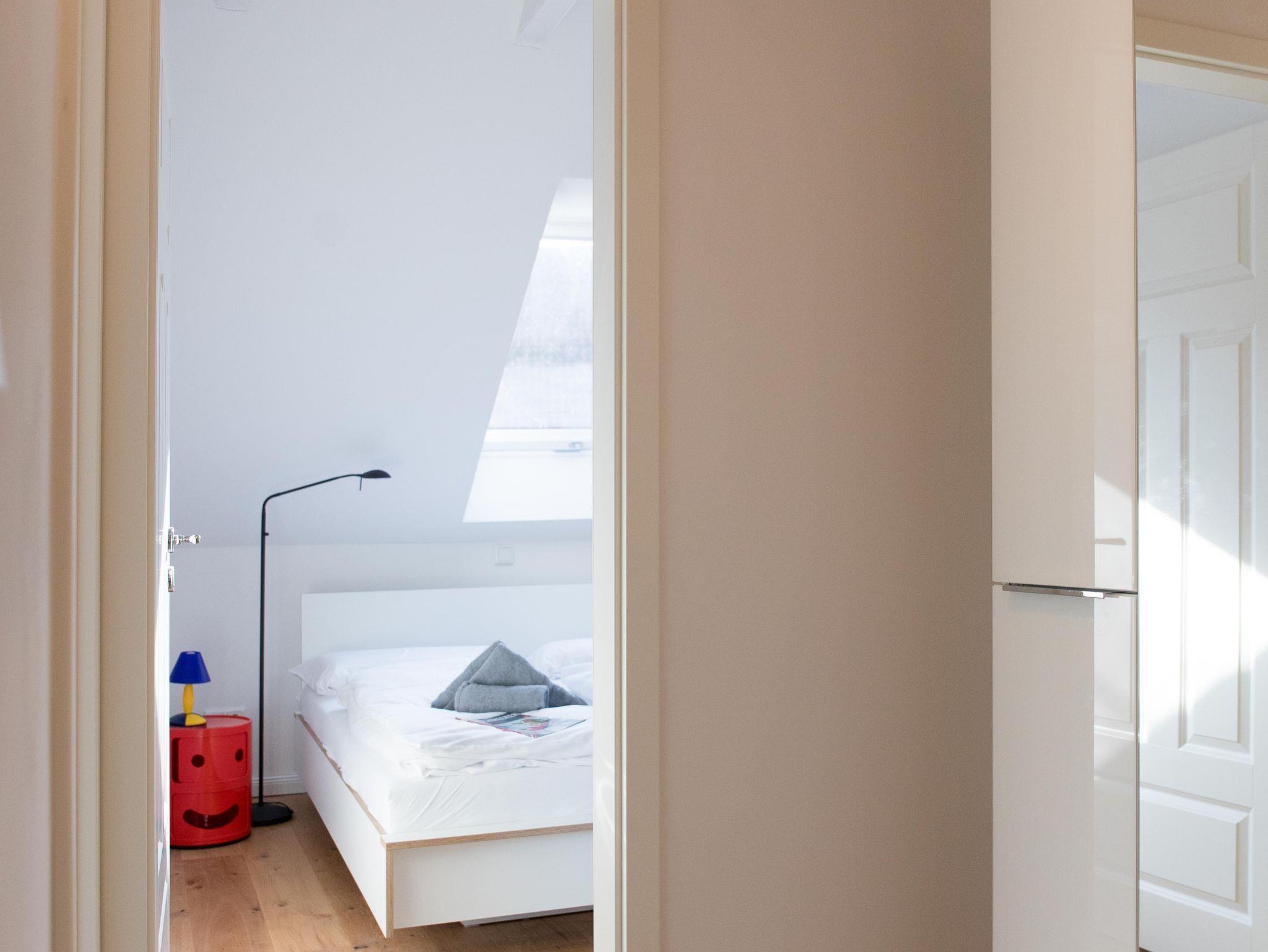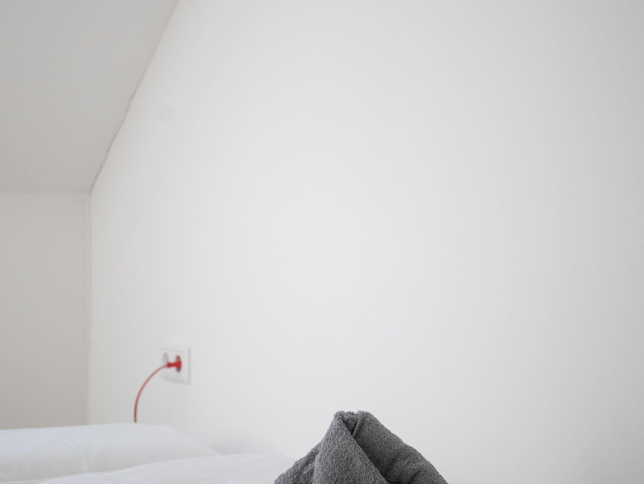 Im Dachgeschoss befinden sich 2 Schlafzimmer mit 1 Doppelbett und 2 Einzelbetten, 1 Kleiderständer und 1 Kleiderschrank im Flur. In beiden Schlafzimmern können die Fenster verdunkelt werden, Insektenschutzrollos bewahrt Sie vor lästigen Besuchern. Ein Kinderschutzgitter zur Treppe schützt Ihre Kleinen. Das Bad verfügt über eine bodengleiche Dusche, Haartrockner und Kosmetikspiegel.