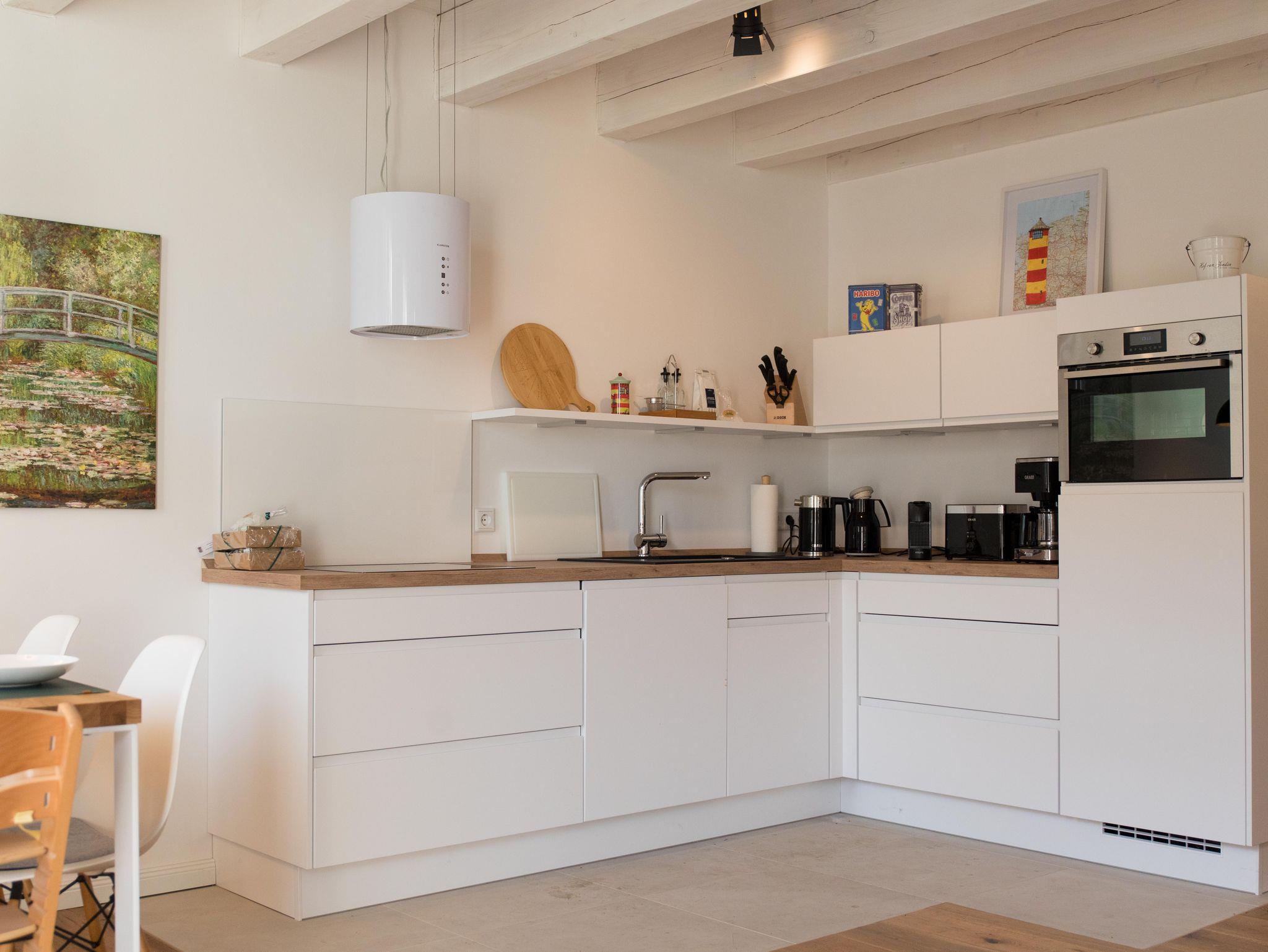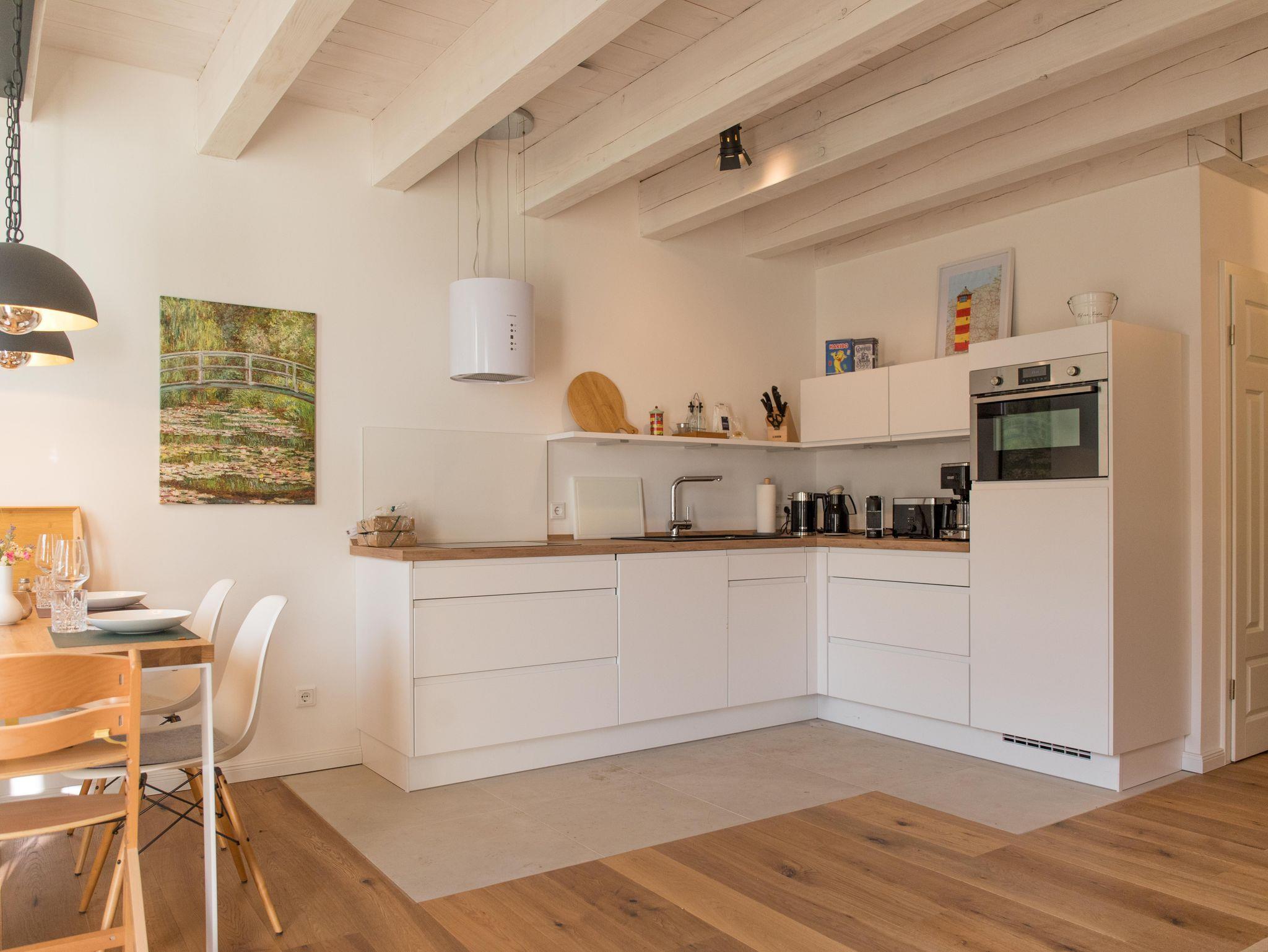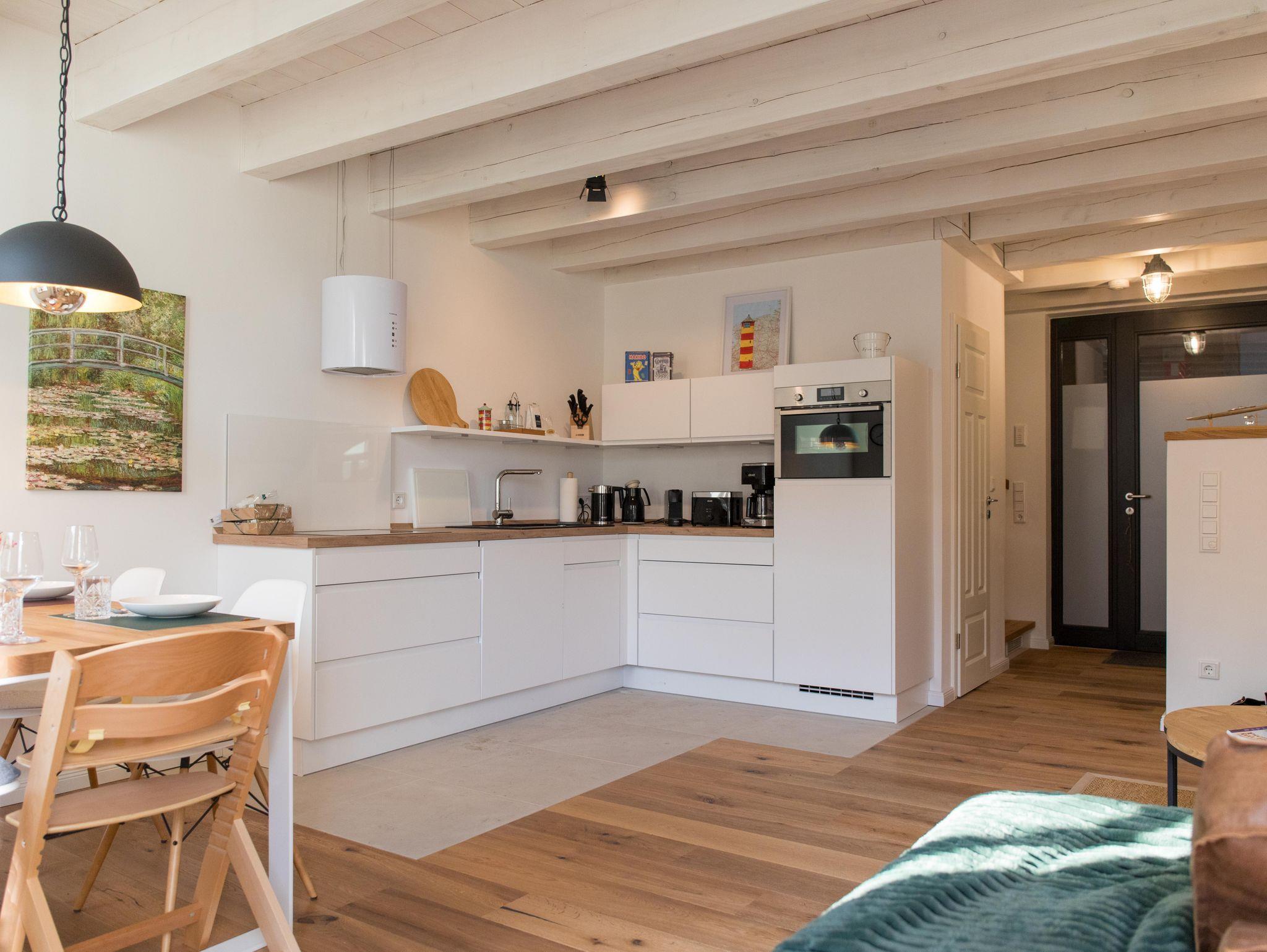 Der Wohnbereich ist bestimmt durch eine Sitzlandschaft, 1 großen TV und einer Kinderspielecke. Die Küche ist – neben Esstisch mit 4 Stühlen und 1 Kinderhochsitz - voll ausgestattet mit Induktionsherd, Dunstabzugshaube, Backofen, Mikrowelle, Kühlschrank, Geschirrspüler sowie Küchengeräten wie Nespresso-Maschine, Wasserkocher, Toaster. Vom Wohnbereich geht es auf Ihre Terrasse mit Blick auf eine große Wiese, die z.B. von Kindern zum Spielen genutzt werden kann. Mit verstellbaren Gartenstühlen, Tisch und Weber Holzkohlegrill können Sie den Tag ausklingen lassen oder den Sonnenaufgang beobachten.