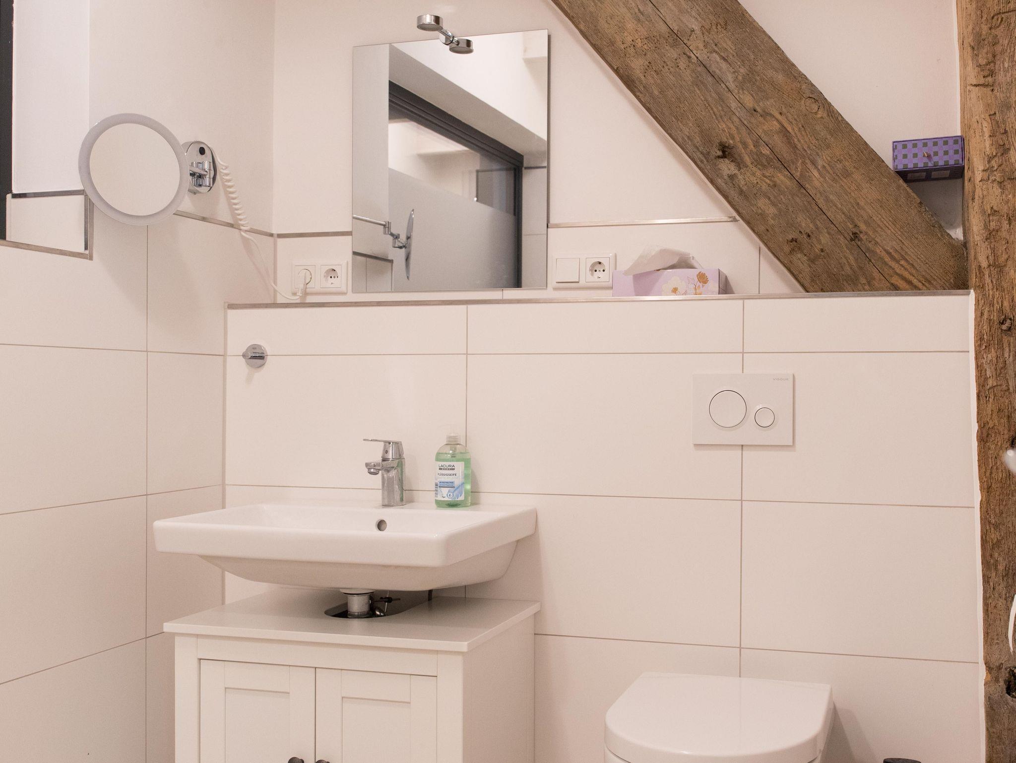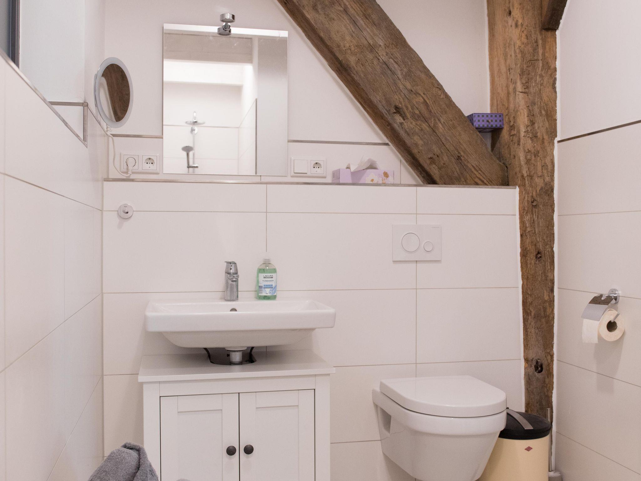 Alle Wohnungen sind Maisonette und zeichnen sich durch moderne, Grundrisse aus. Durch die Einbeziehung des historischen Ständerfachwerks in die Wohnraumgestaltung erhalten die Einheiten zudem eine besondere, unverwechselbare Note. Fußbodenheizung, Echtholz-Parkettböden sowie Armaturen und Keramik namhafter Hersteller versprechen einen hohen Wohnkomfort. Zu jeder Wohnung gehört eine großzügige Terrasse sowie ein PKW-Stellplatz mit Abstellschuppen. Die Außenanlagen des rund 4000 qm großen Grundstücks zeichnen sich besonders an der Südseite und Ostseite durch großzügige Grünflächen aus, die mit Sträuchern und Hecken geschmackvoll angelegt wurden. Ein alter Baumbestand rundet das Gesamtbild ab.