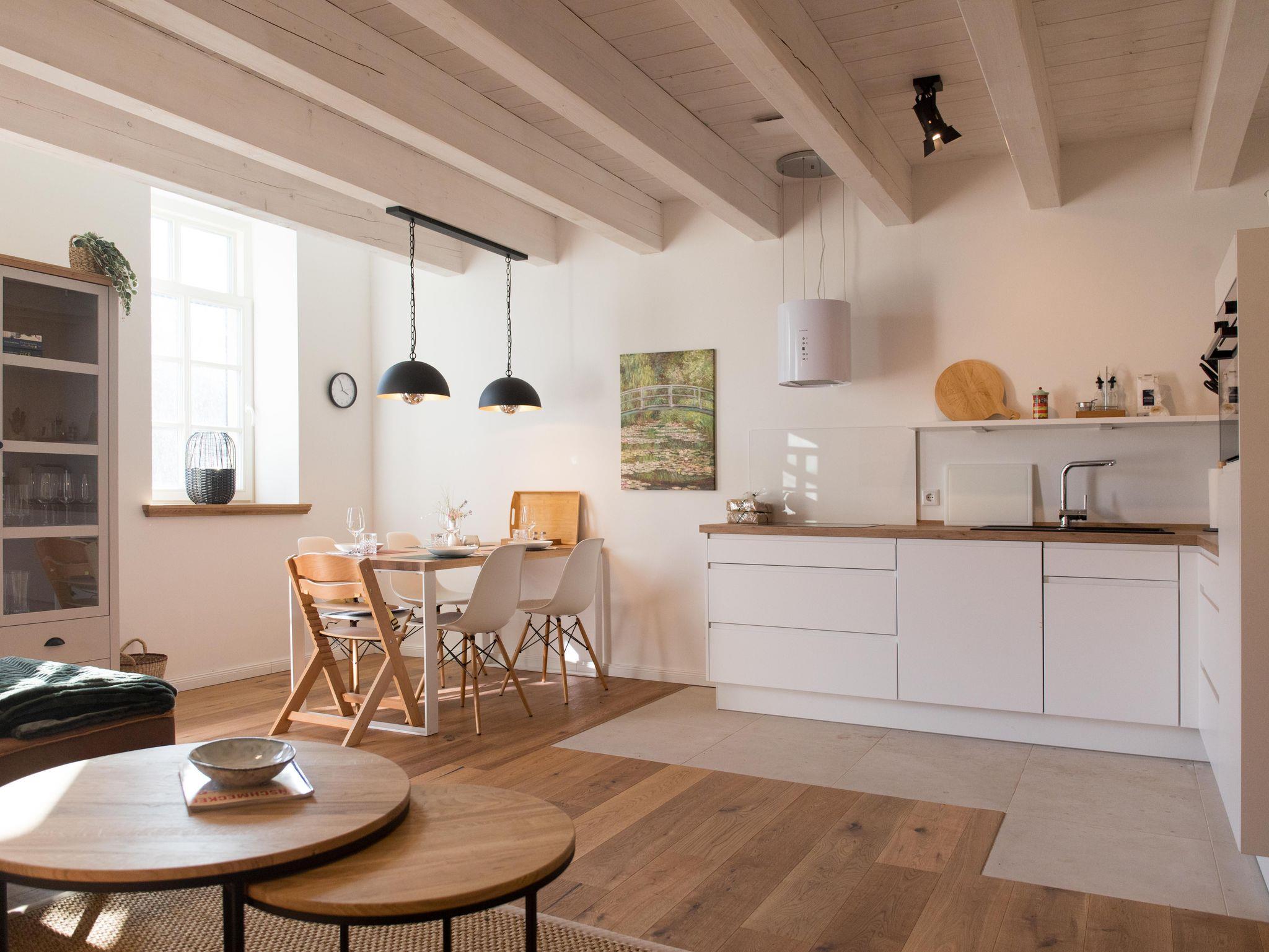 Im Erdgeschoss befinden sich Wohnbereich, offene Küche und Gäste-WC: