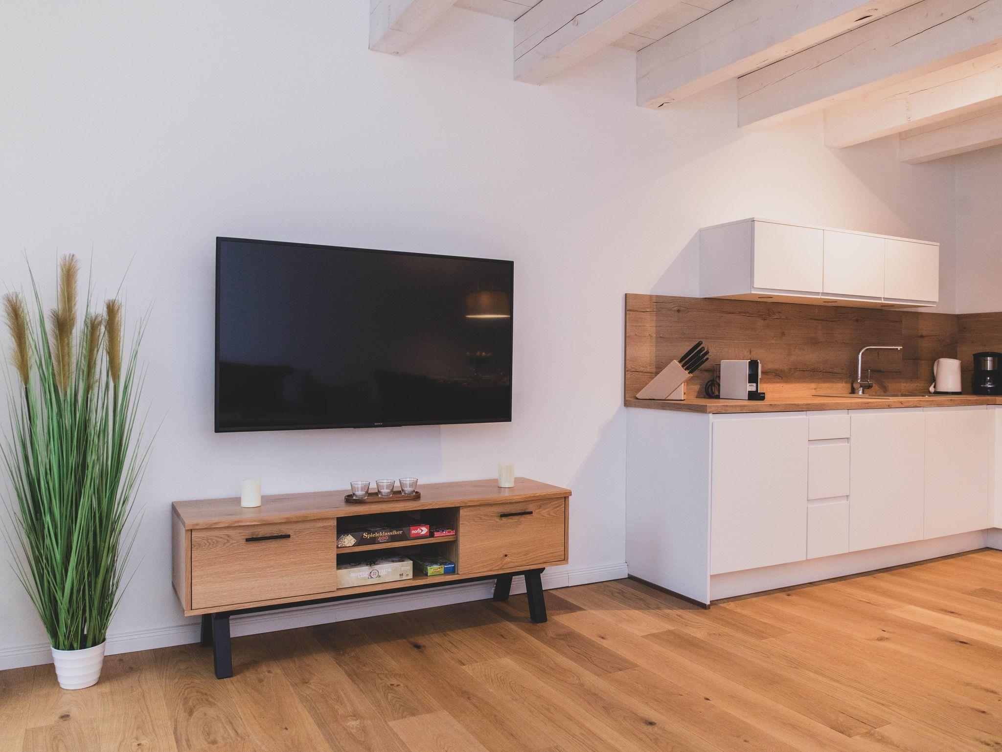 Für Erholungssuchende stehen moderne Annehmlichkeiten wie WLAN, TV-Anschluss und Spiele zur Verfügung. Ein gemeinschaftlicher Trockner und eine Waschmaschine runden das Angebot ab. Außerdem gibt es eine (kostenpflichtige) Elektroauto-Ladestation bei dem zur Wohnung gehörenden Parkplatz, E-Bikes können im abschließbaren Abstellschuppen aufgeladen werden, perfekt für umweltbewusste Reisende.