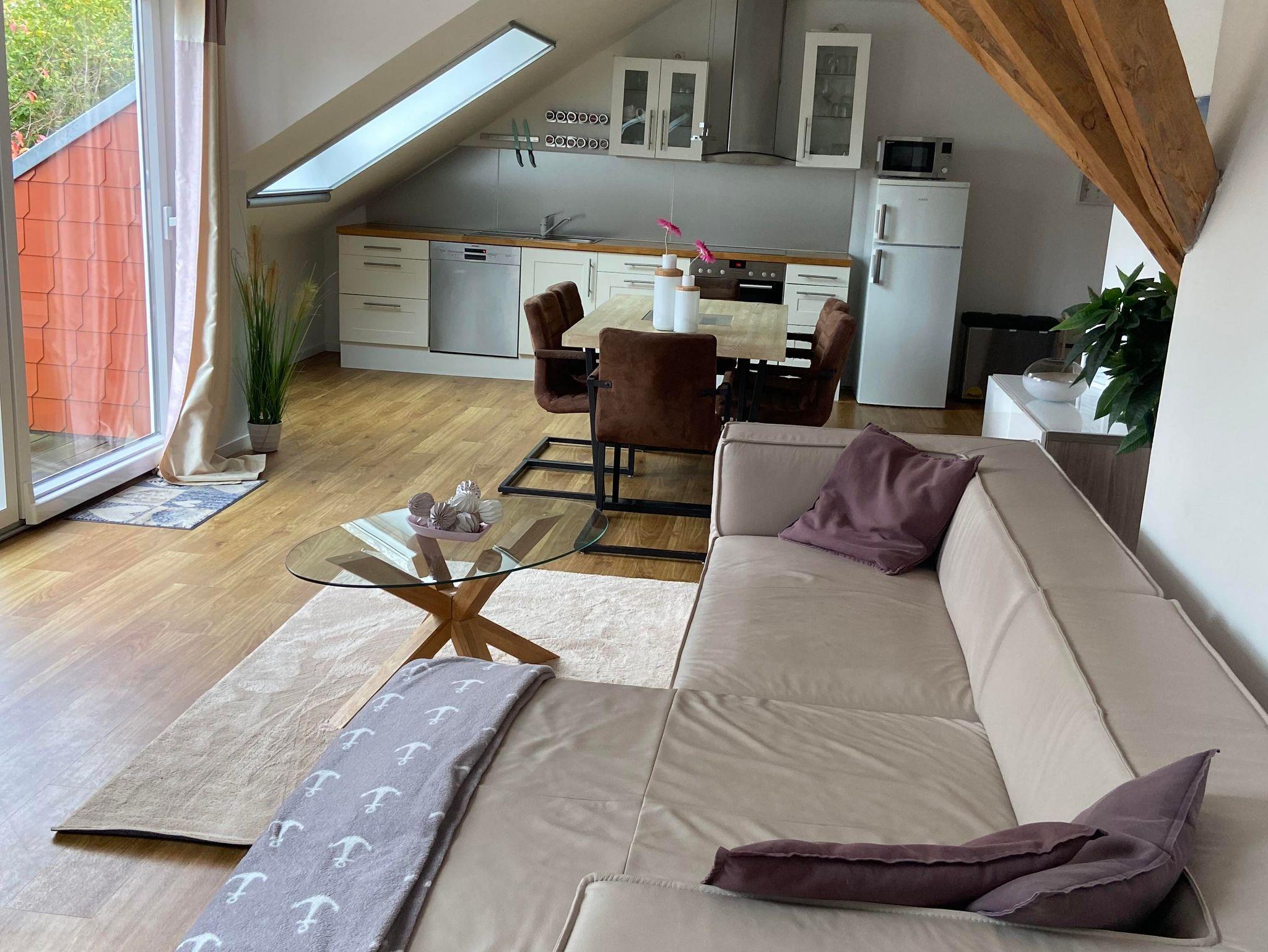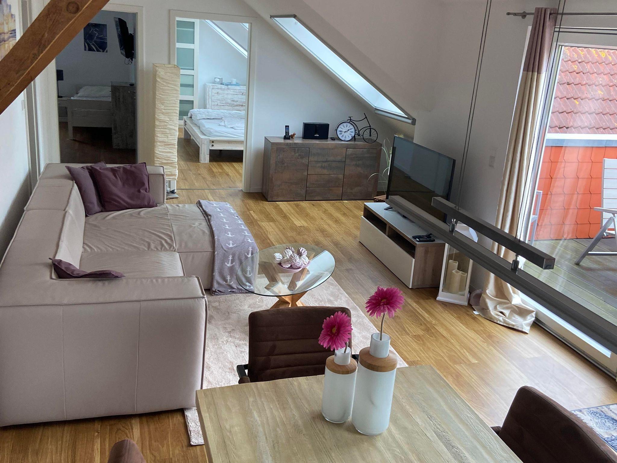 Bei der Nichtraucher-Ferienwohnung Manslagt handelt es sich um eine Dachgeschosswohnung (77 qm zzügl. 23 qm Schrägen als Nutzfläche)