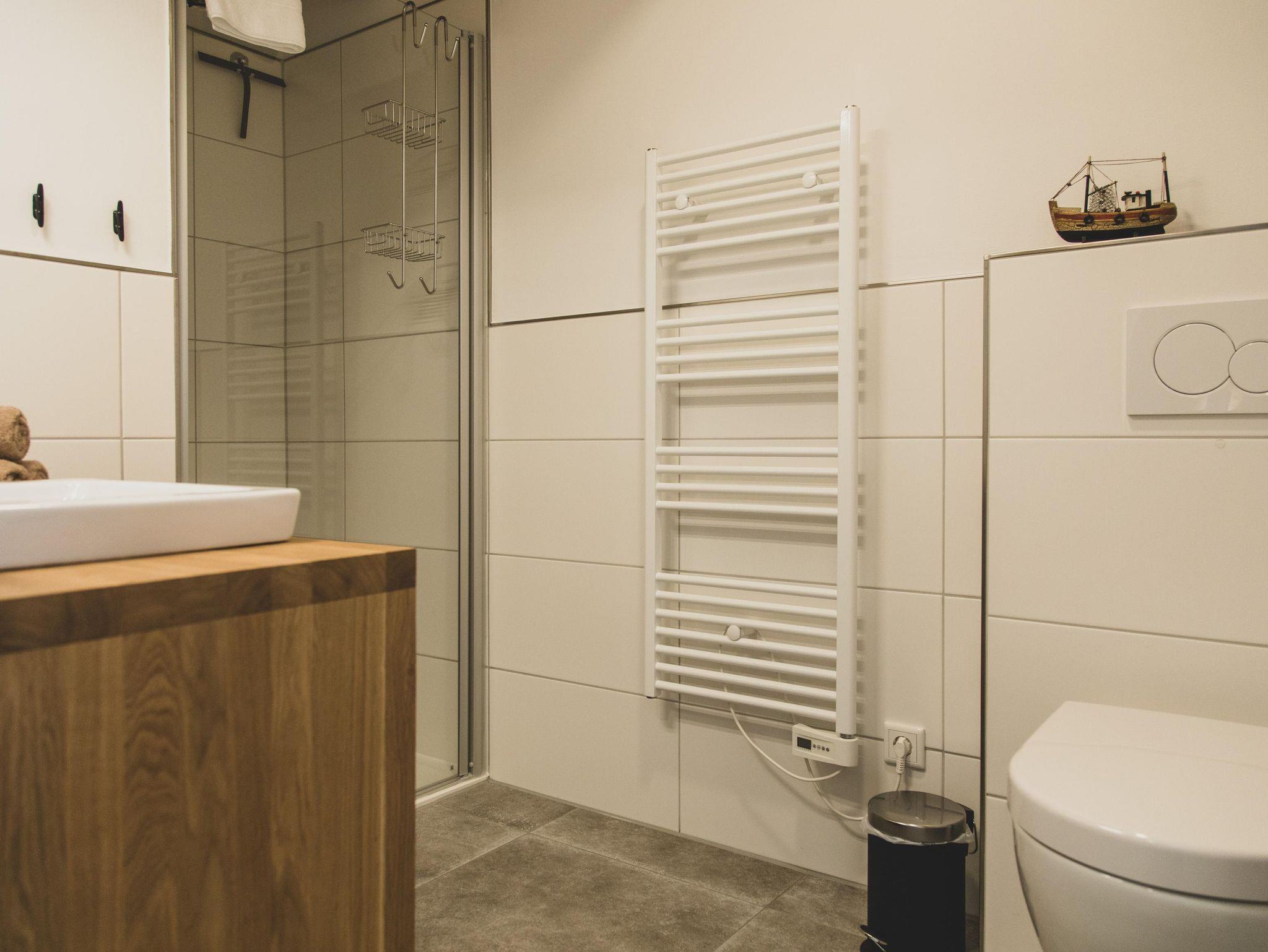 Im Obergeschoss befinden sich zwei geräumige Schlafzimmer, ausgestattet mit Doppelbett bzw. zwei Einzelbetten.? Das maritime Duschbad ist auf gleicher Etage.