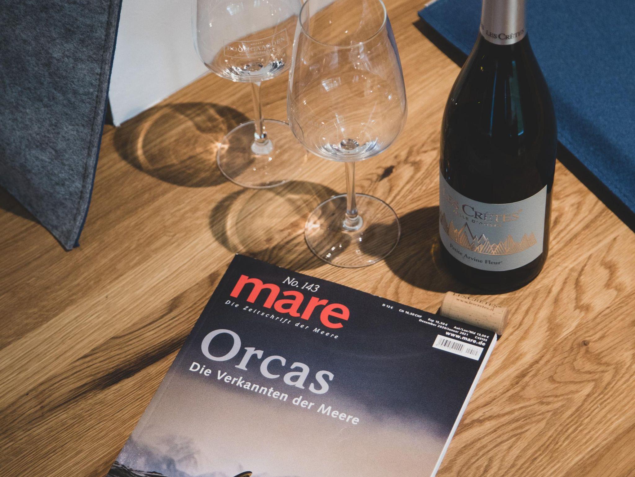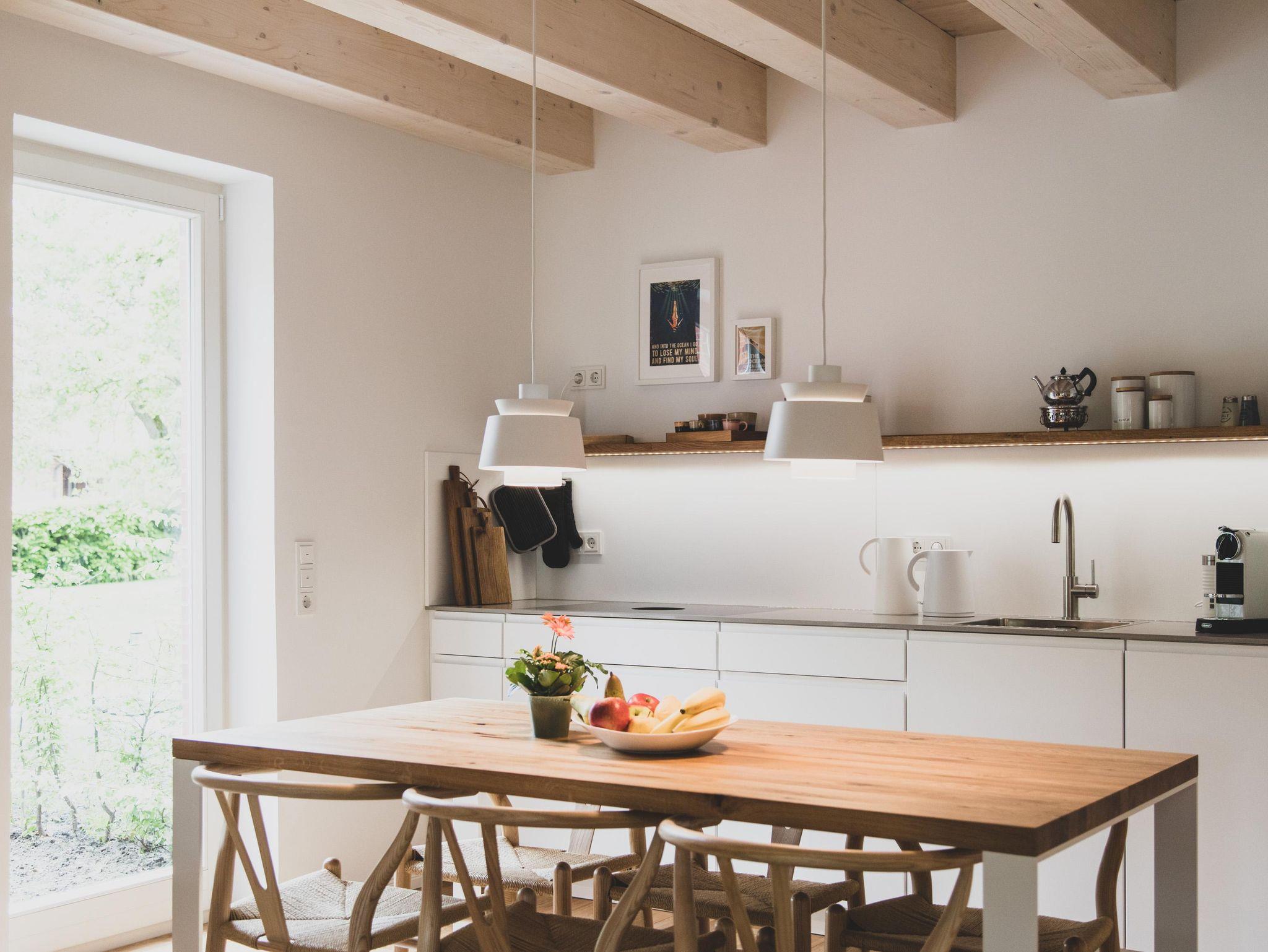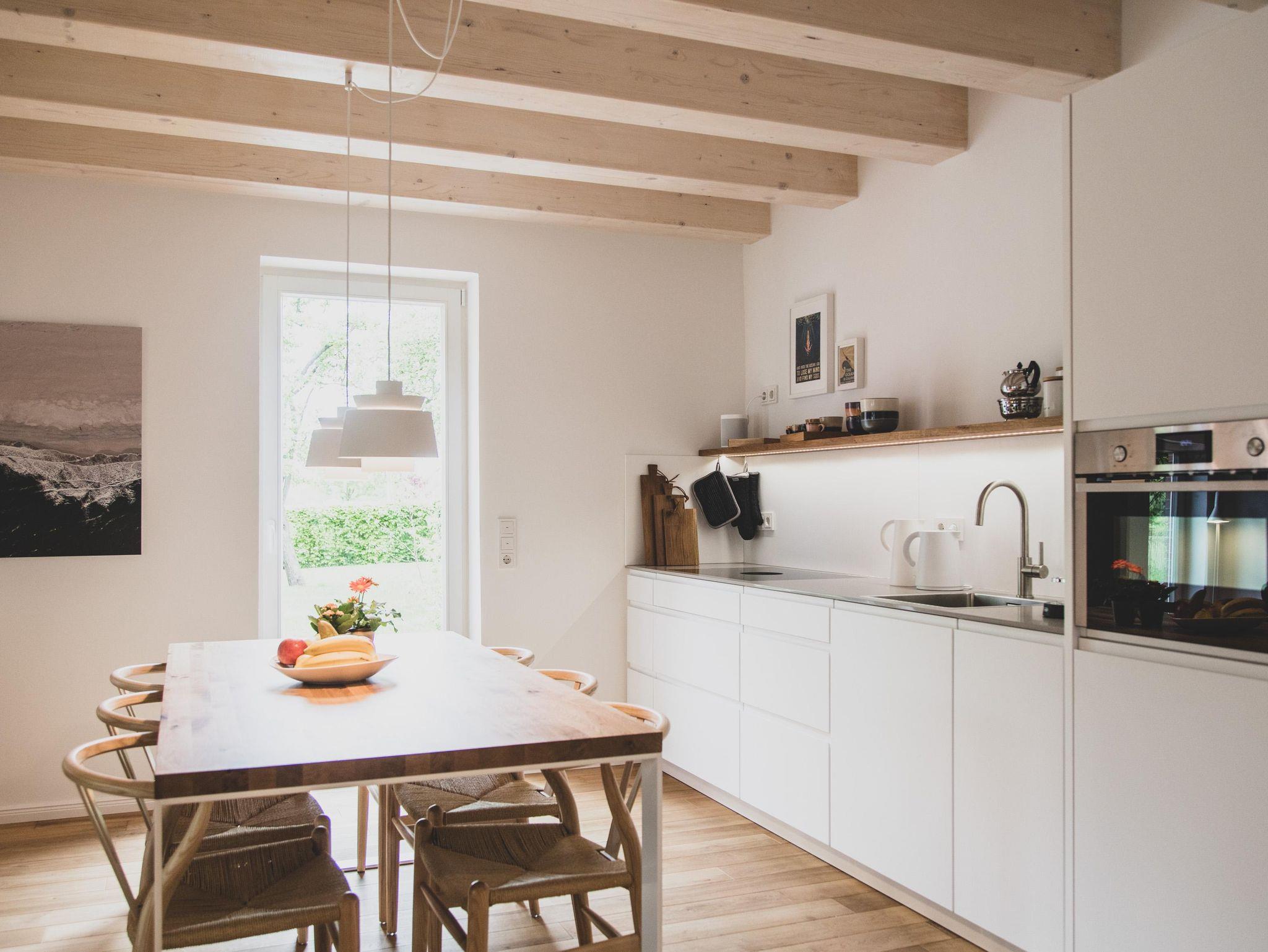 Die moderne und umfangreich ausgestattete Küche ist mit einem Bora-Kochfeld, Backofen/Mikrowelle, Geschirrspüler und einem großen Kühlschrank ausgestattet. Kochliebhaber können sich voll entfalten. Für diejenigen, die statt eines Ostfriesentees lieber frischen Kaffee bevorzugen, steht eine Nespressomaschine nebst Milchaufschäumer zur Verfügung.