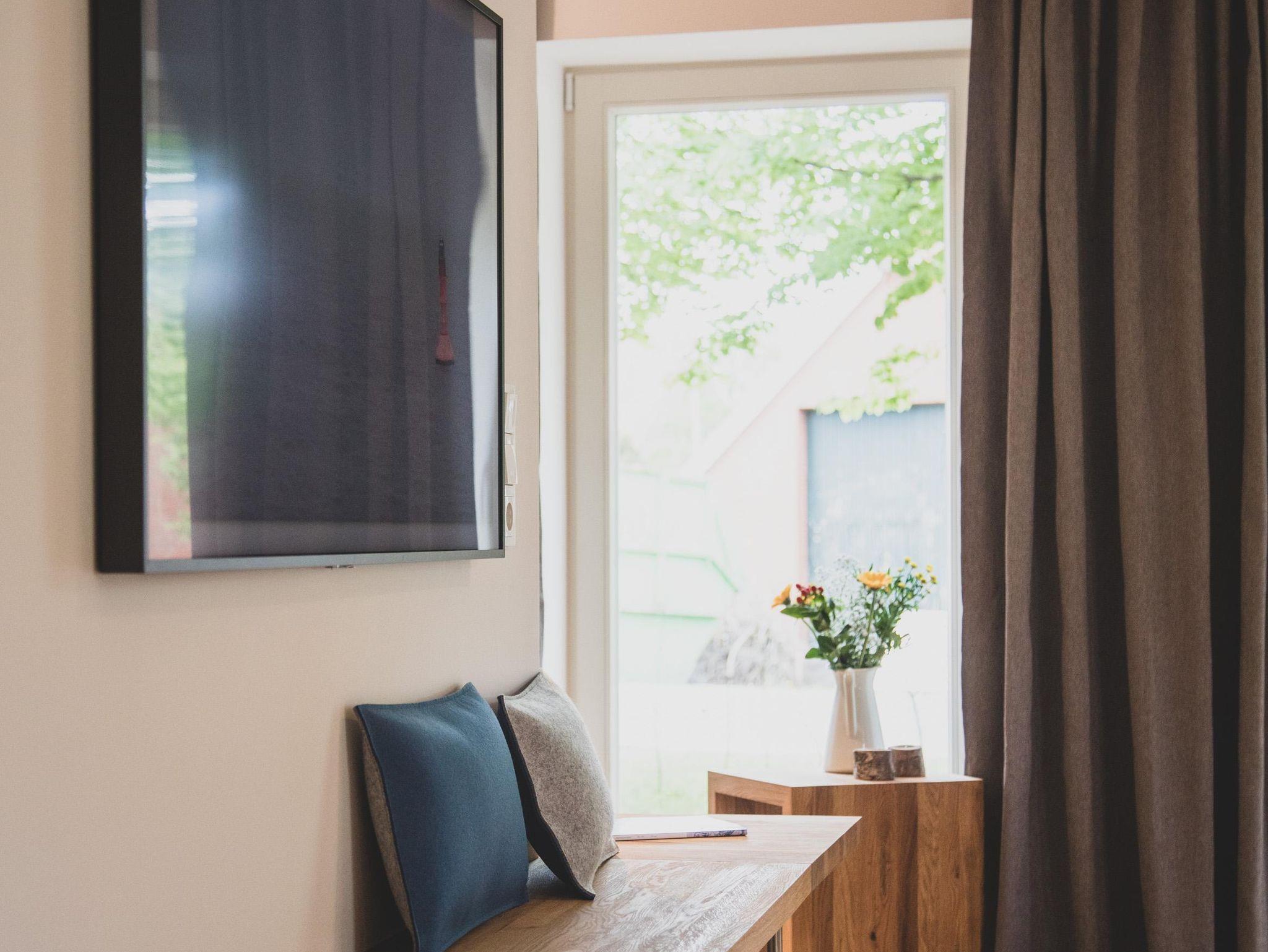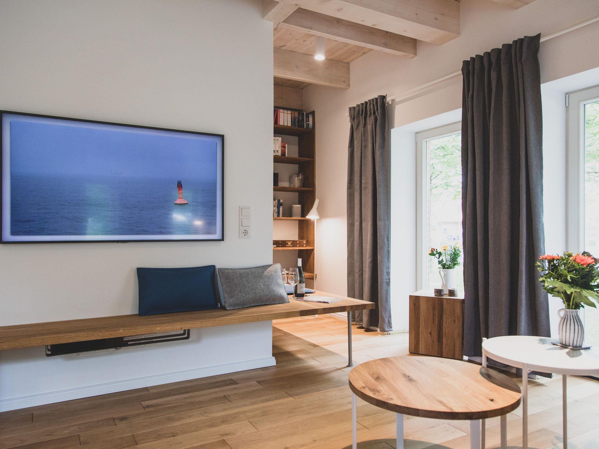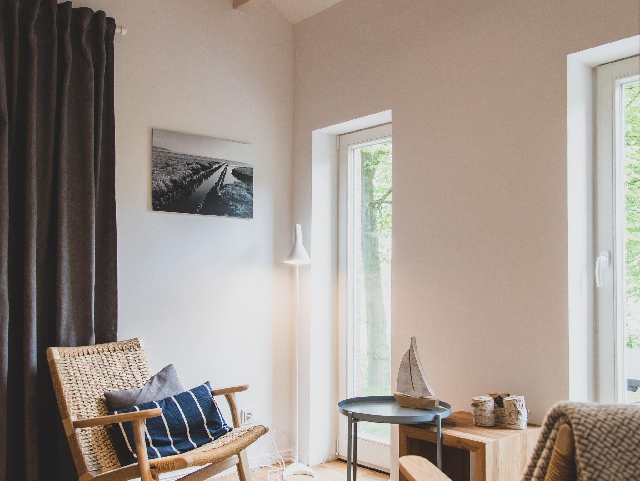 Mediale Unterhaltung bieten ein großer Fernseher mit SAT-Anschluss und kostenloses WLAN. Über das Sonos-System kannst Du Deine Lieblingsmusik abspielen. In der separaten Leseecke oder in gemütlichen Sesseln mit direktem Blick in den Birnengarten lässt es sich beim Ostfriesentee entspannt in den bereitgestellten Büchern schmökern – auch Reiseführer liegen zur optimalen Planung Deines Aufenthalts bereit.