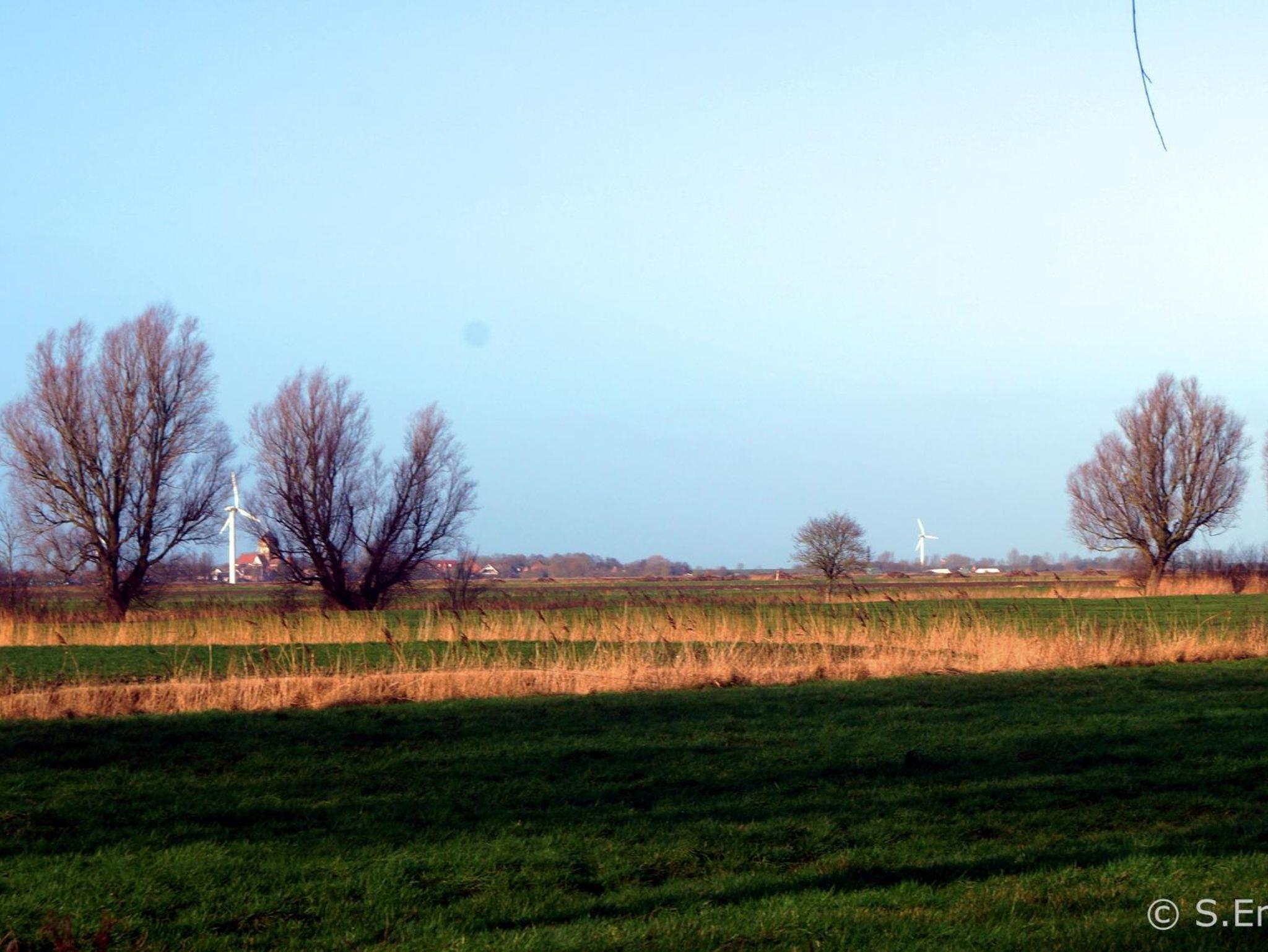 Der Blick reicht über die Meede bis zur Kreuzkirche von Pilsum, zur Deichkrone am Horizont und zu den Zwillingsmühlen von Greetsiel. Als Ausgangspunkt für Fahrradtouren sind die FEWO´s ideal geeignet. Die nähere Umgebung kann aber auch mit kleineren oder größeren Spaziergängen erkundet werden.