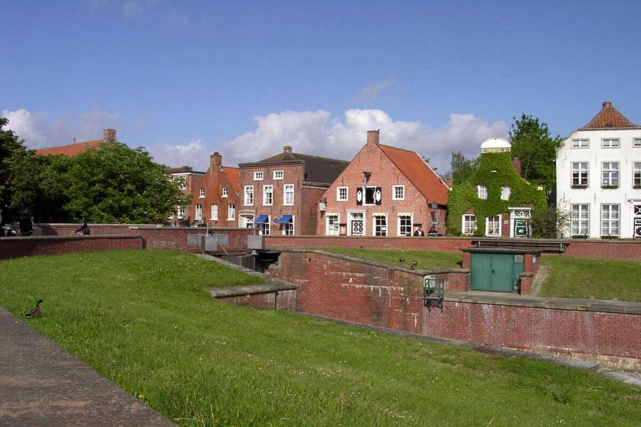Gemütliche Ferienwohnung mit Kamin, Whirlpool und großer Holzterrasse direkt am ruhigen Hafendeich.
