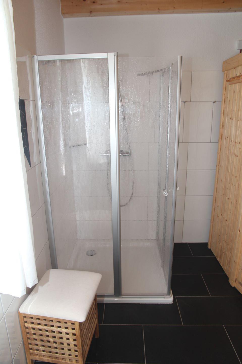 Im Obergeschoss sind 3 weitere Schlafzimmer (1 * Doppelbett, 2 * mit je 2 einzelnen Betten) und ein weiteres Dusch-Bad.