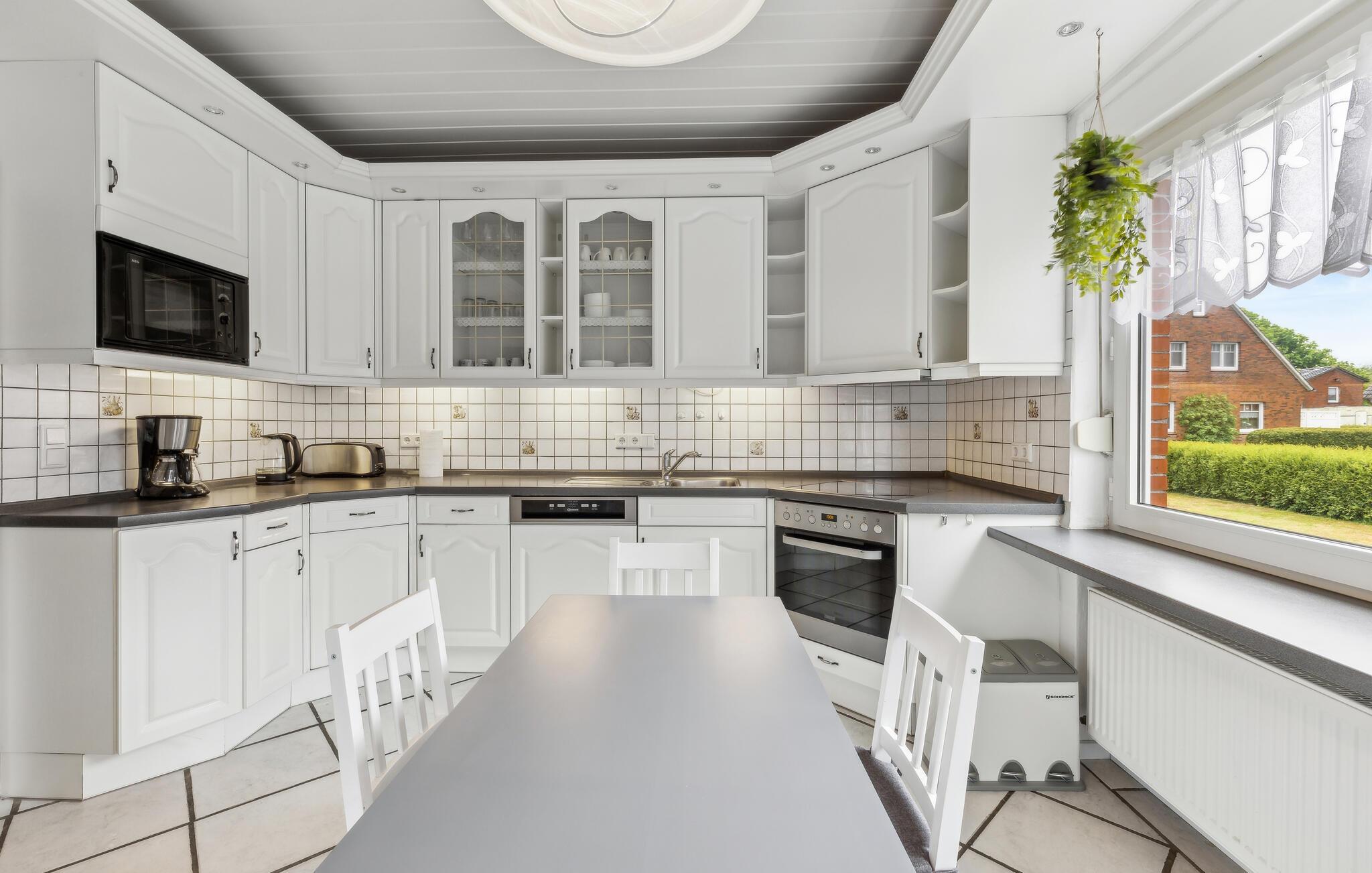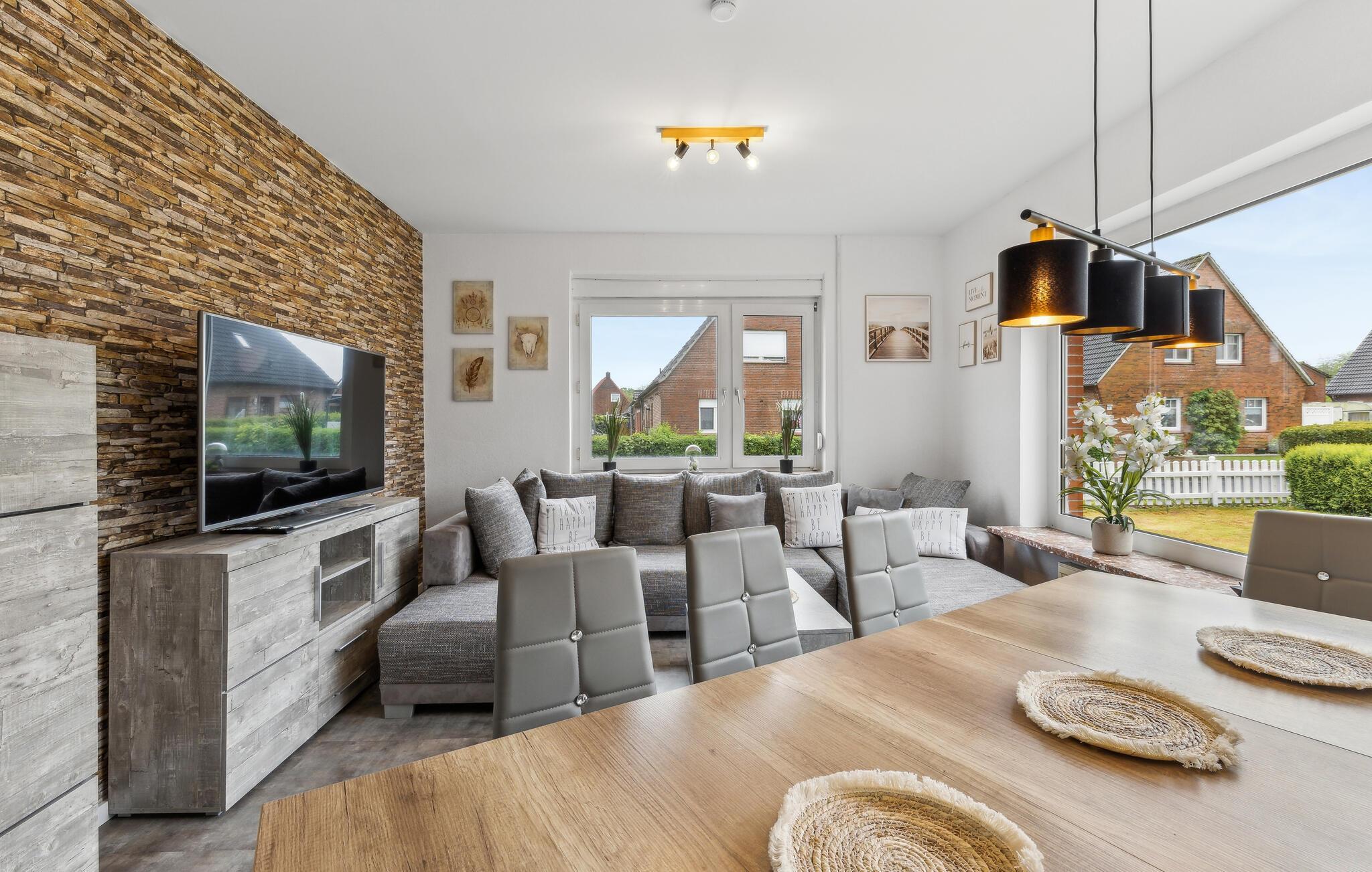 In Ihrem Ferienhaus in Krummhörn, nur unweit vom Nationalpark Niedersächsisches Wattenmeer entfernt, erwartet Sie ein Urlaub mit Entspannung und Erholung. Diese einladende Unterkunft bietet Ihnen alles, was Sie für einen Aufenthalt mit vielen schönen Naturerlebnissen benötigen. Das Ferienhaus besticht durch seine traditionelle Backsteinfassade und ein großzügiges Grundstück. Starten Sie ruhig in den Tag mit einem Frühstück im Wintergarten oder bei schönem Wetter draußen auf der Terrasse und genießen Sie den Blick auf den gepflegten Garten. Lassen Sie den Stress des Alltags hinter sich und tanken Sie neue Energie. Oder speisen können Sie im Wohnbereich, wo bequeme Sofas darüber hinaus zu gemütlichen Stunden bei Filmen oder Spielen einladen.