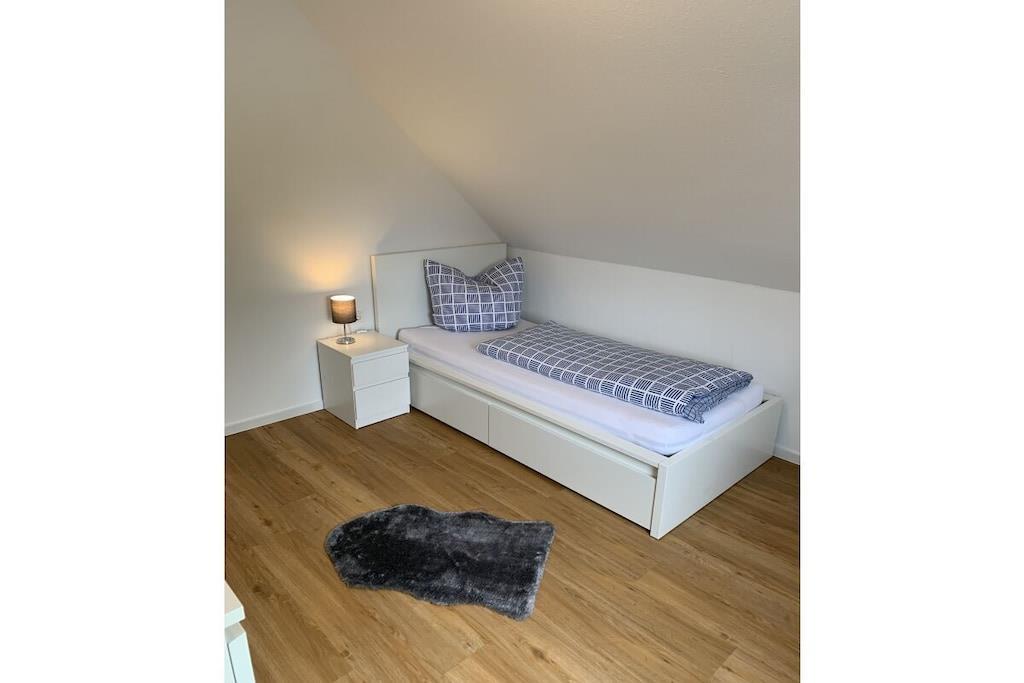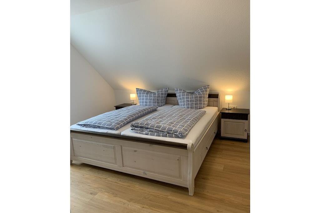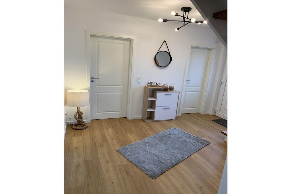 Unser Ferienhaus Meerzeit ist 2021 fertiggestellt worden und für bis zu 6 Personen ausgestattet. Die Unterkunft ist hochwertig und modern eingerichtet und verfügt im gesamten Haus über Fußbodenheizung, sodass auch die kalten Wintertage gemütlich verbracht werden können. Im Eingangsbereich zur Rechten befindet sich ein kleines WC mit ebenerdiger Dusche. Ebenso befindet sich der Hauswirtschaftsraum auf der rechten Seite. Hier steht euch eine Waschmaschine kostenfrei zur Verfügung. Das Erdgeschoss ist mit einem Schlafzimmer mit Doppelbett (140 cm x 200 cm) ausgestattet. Im Wohn- und Essbereich befindet sich eine große Couch, eine schöne Sitzgruppe, sowie ein großer Flachbildfernseher. Auch unsere Küche ist voll ausgestattet. Im 1. OG befinden sich drei weitere Schlafzimmer. Zwei mit je einem Einzelbett und eins mit einem Doppelbett (180 cm x 200 cm). In allen Schlafzimmern befinden sich Fernseher. Außerdem ist auch im Obergeschoss ein schönes, großes Badezimmer mit ebenerdiger Dusche (150 cm x 100 cm) zu finden.