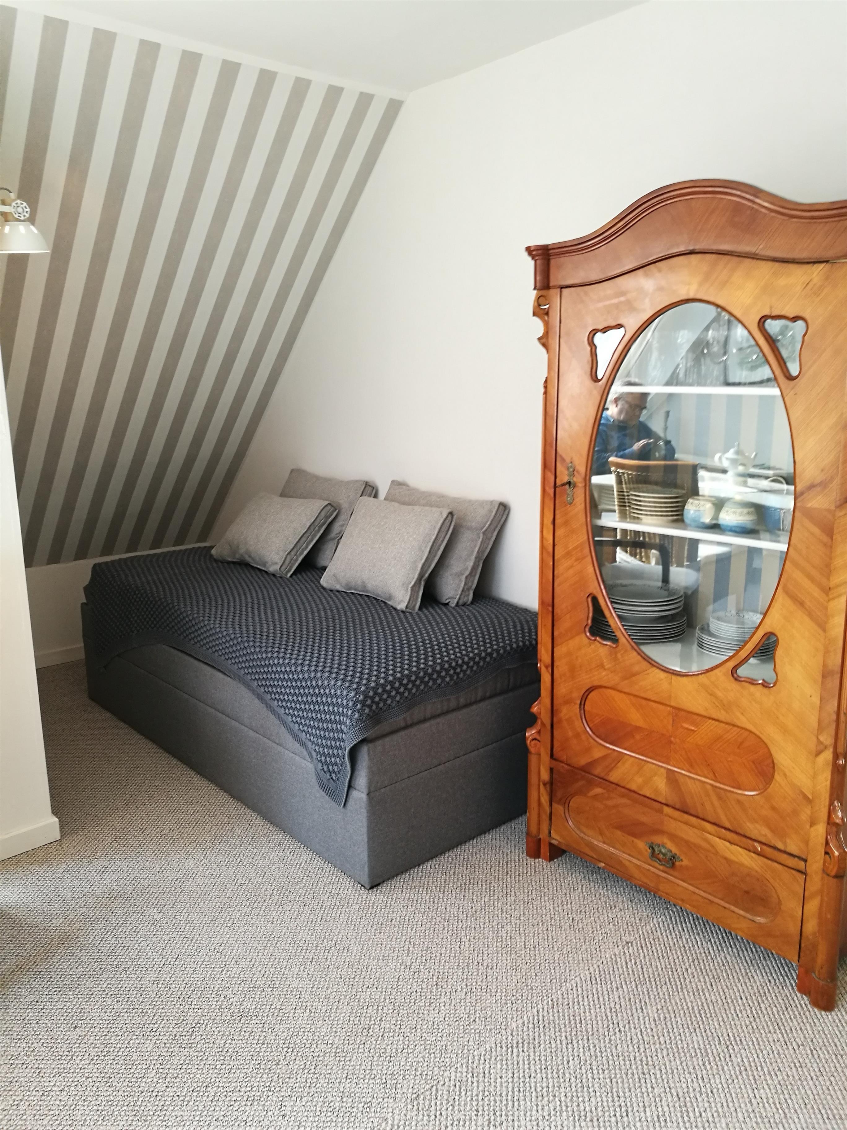 In dem Boxspringbett (180x200) im Schlafzimmer können Sie erholsamen Schlaf finden. In dem großzügig ausgerichteten Wohnraum befindet sich eine zusätzliche Schlafgelegenheit (Boxspringbett 90x200).