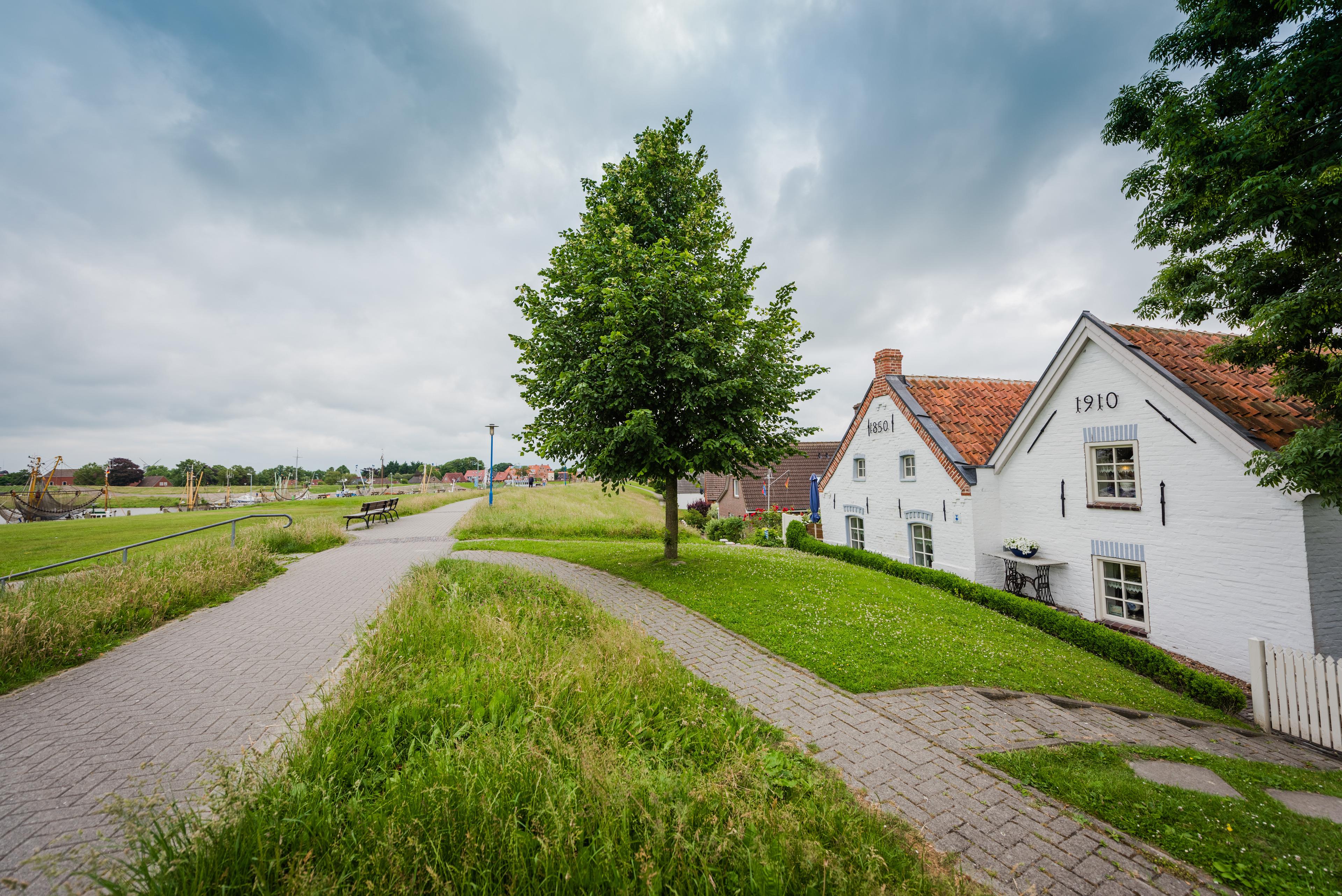 Das Huus an't Diek von 1910 liegt so zentral, dass Gäste sagen: Hier erleben wir Greetsiel aus der ersten Reihe heraus.