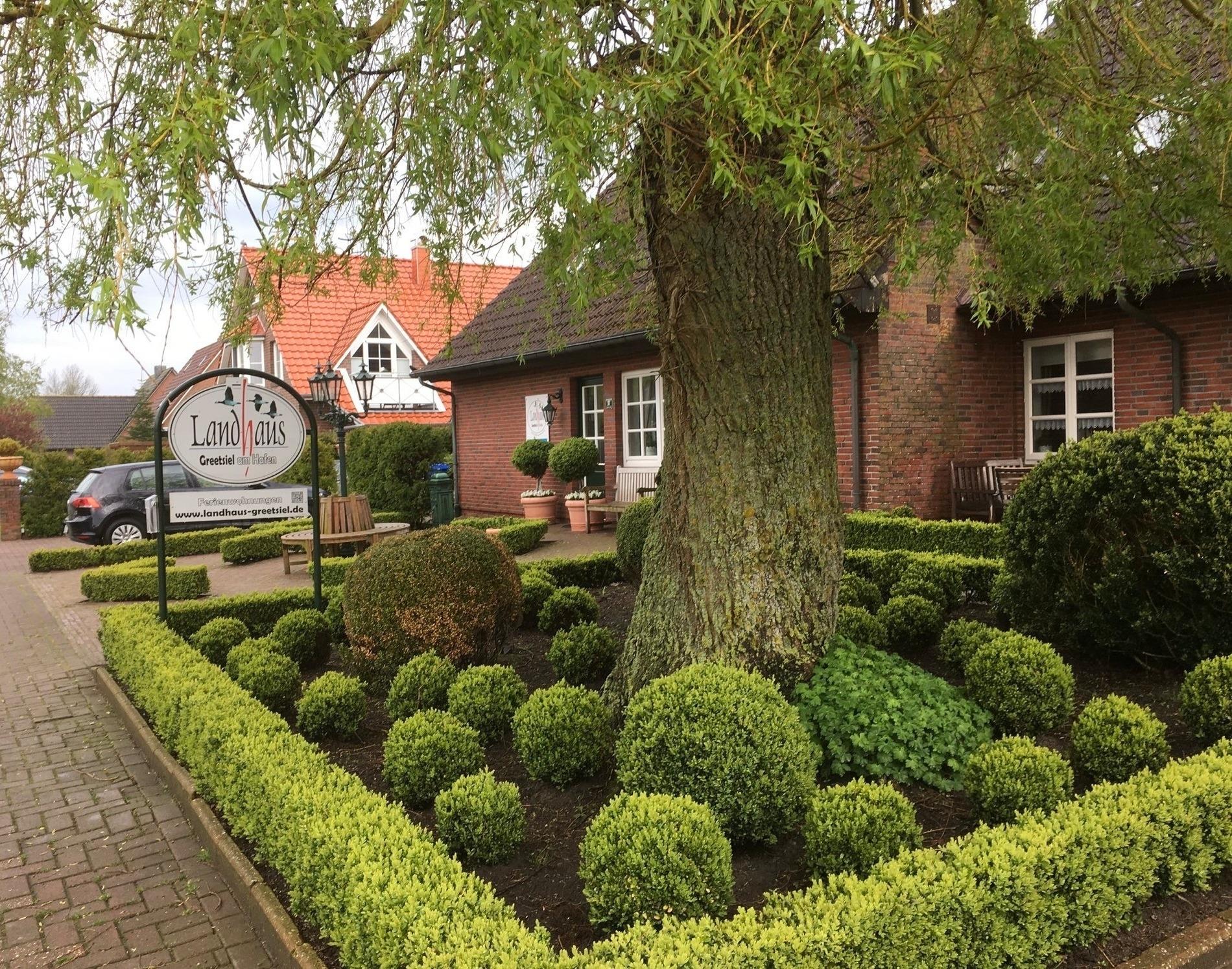 Das "Landhaus Greetsiel am Hafen" bietet 7 Ferienwohnungen von 35 bis 157 qm. Es steht auf einem über 2000 qm großen Grundstück: eine Oase der Erholung. Sitz- und Liegemöbeln laden im parkähnlichen Außenbereich ein, die Nordseeluft zu genießen.