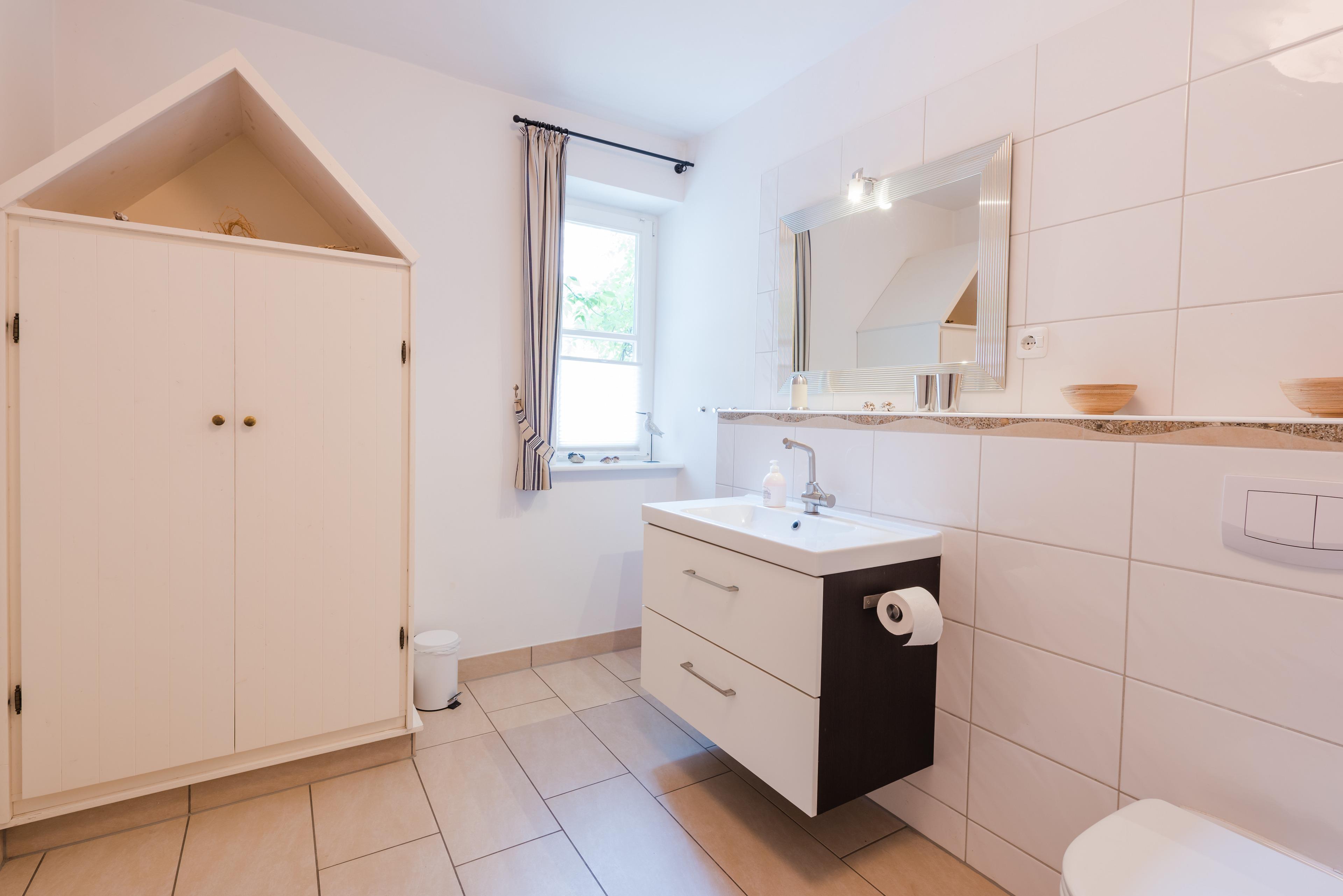 Die "Strandlust" ist mit 90 qm sehr geräumig. Die moderne Wohnung bietet mit ihrem Wohnzimmer in maritimen Farben und der offenen Landhausküche zum riesigen Essplatz weit mehr als viele andere Feriendomizile. Sie hat alles, was den Urlaub schöner macht. Es gibt zwei Doppelbett-Schlafzimmer. Das Badezimmer ist geräumig. Vor der Wohnung gibt es eine Terrasse. Sehr schön zu sitzen mit einem Glas Wein beim Sonnenuntergang. Hinter der Wohnung erstreckt sich der große Landhaus-Garten mit zig Sitz- und Liegeplätzen sowie Sonnenschirmen - zugänglich durch das Foyer des Hauses.