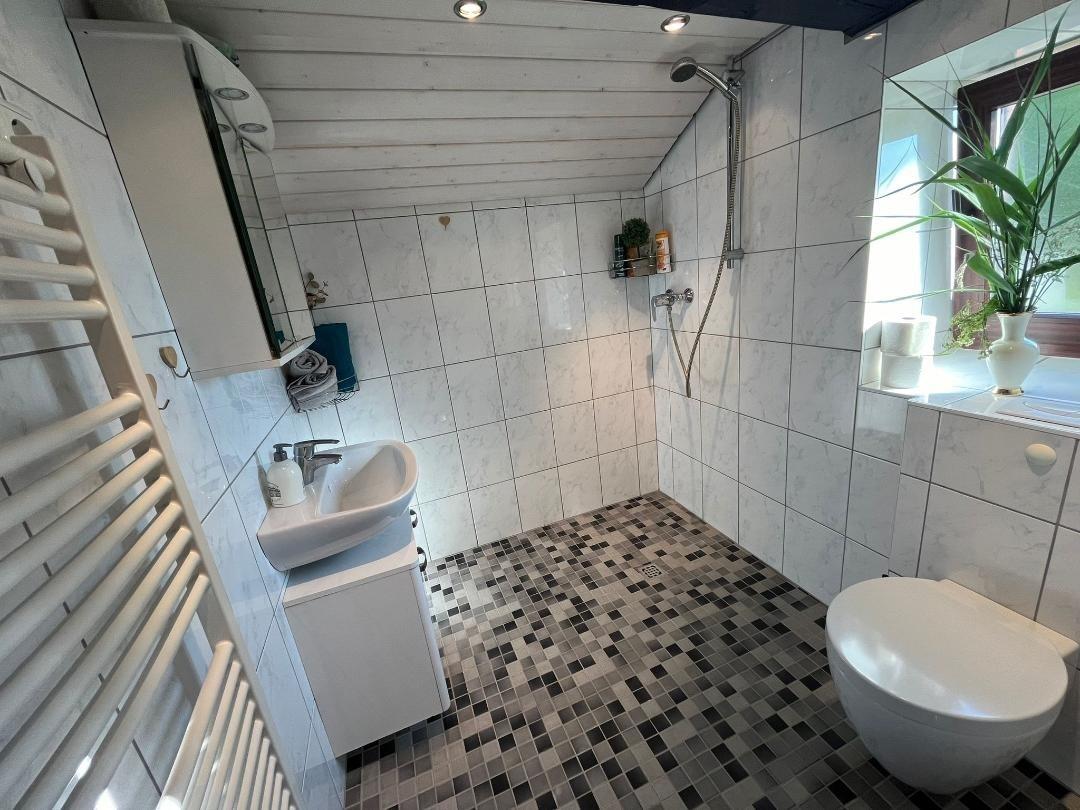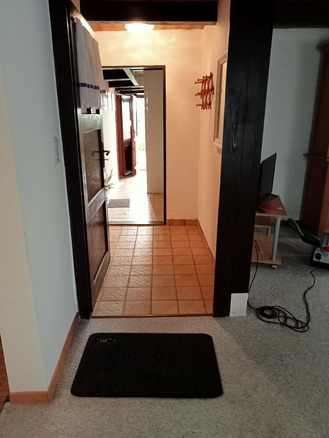 Ein separater Waschraum mit einer Waschmaschine, die kostenlos genutzt werden kann, bietet zusätzlichen Service. Wie in vielen alten Landarbeiterhäusern sind die Decken in einigen Räumen etwas niedriger, jedoch immer über 2 Meter hoch. Die Türdurchgänge haben eine Höhe von ca. 190 cm, nur der Durchgang zum Waschraum ist etwa 175 cm hoch. Zum Haus gehört außerdem ein eigener PKW-Stellplatz.