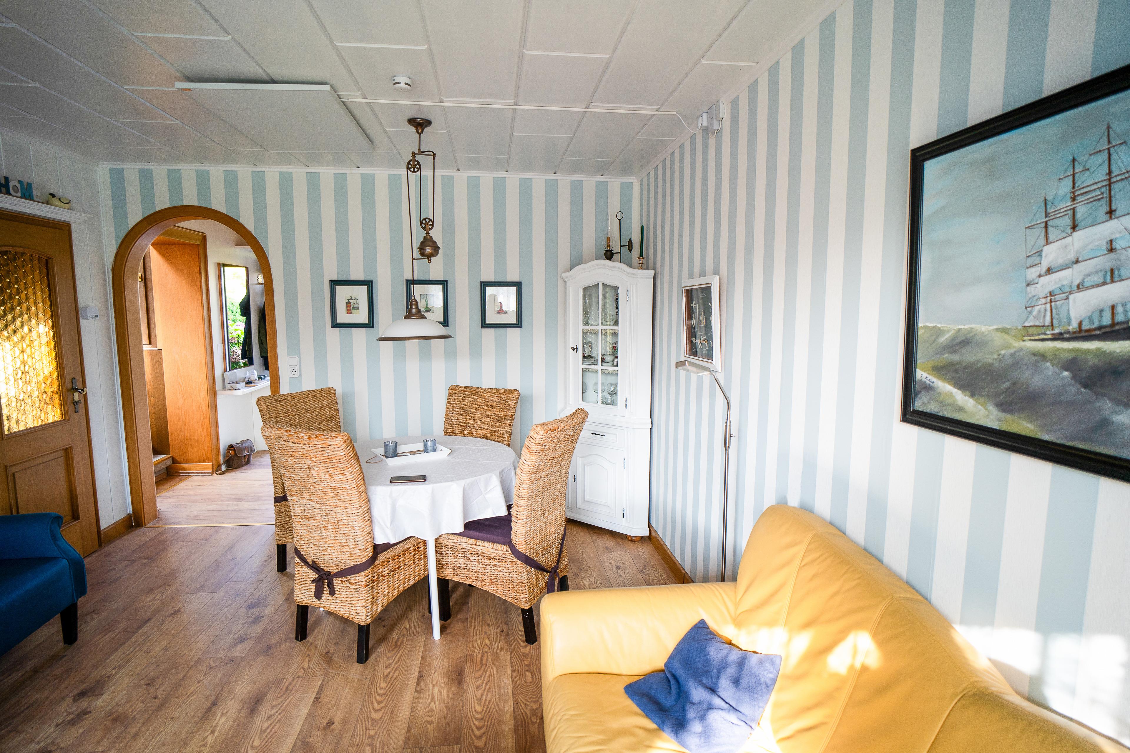 Das Reihenendhaus mit zwei Schlafzimmer wurde Ende 2024 ganz neu hergerichtet. Insbesondere das urgemütliche Wohnzimmer im friesischen Stil mit Kaminofen lädt zum Entspannen ein.