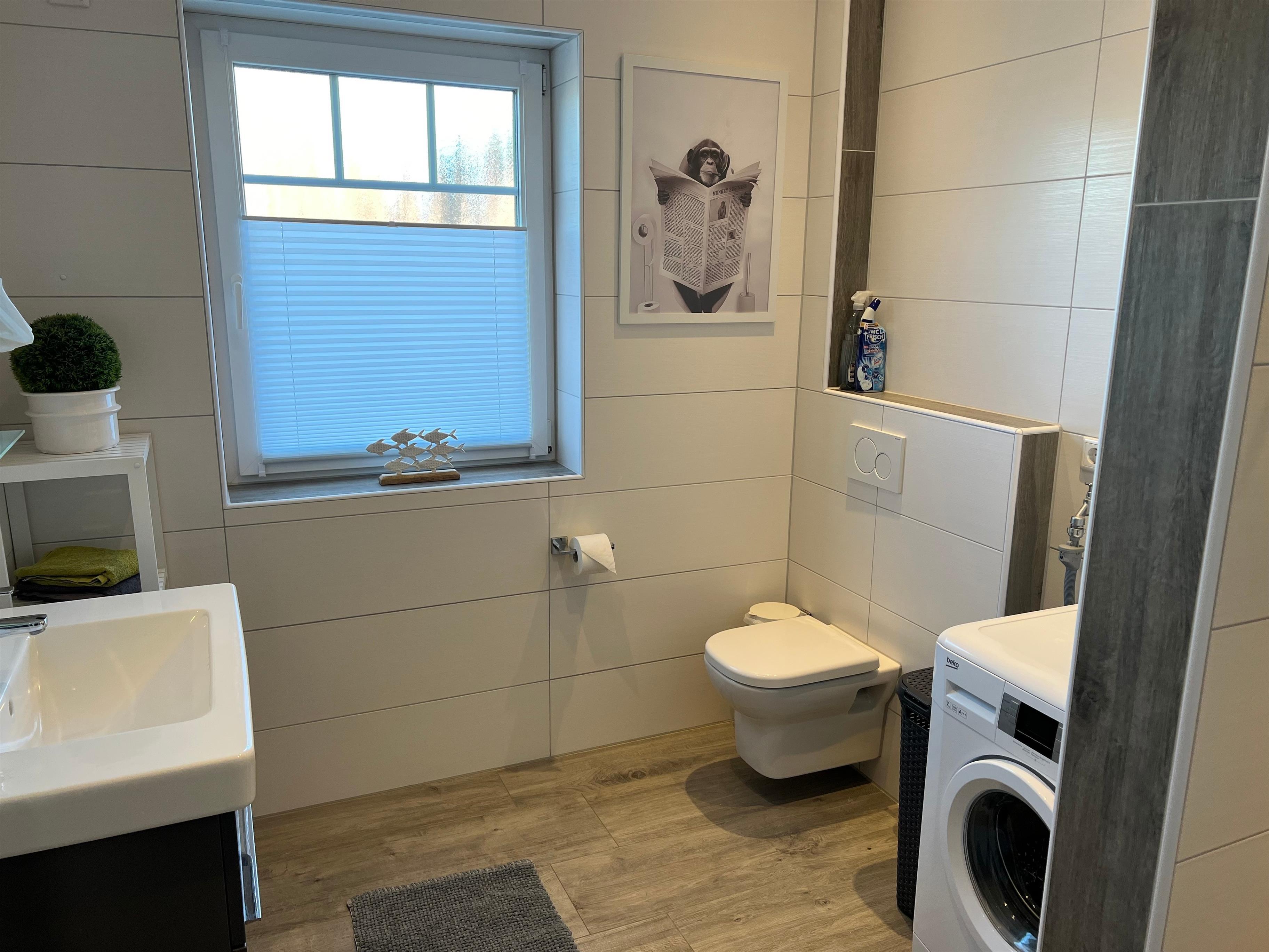 Moderne Ferienwohnung in Krummhörn mit Wellnessraum, Wintergarten und Fahrrädern, ideal für Familien und Erholungssuchende.