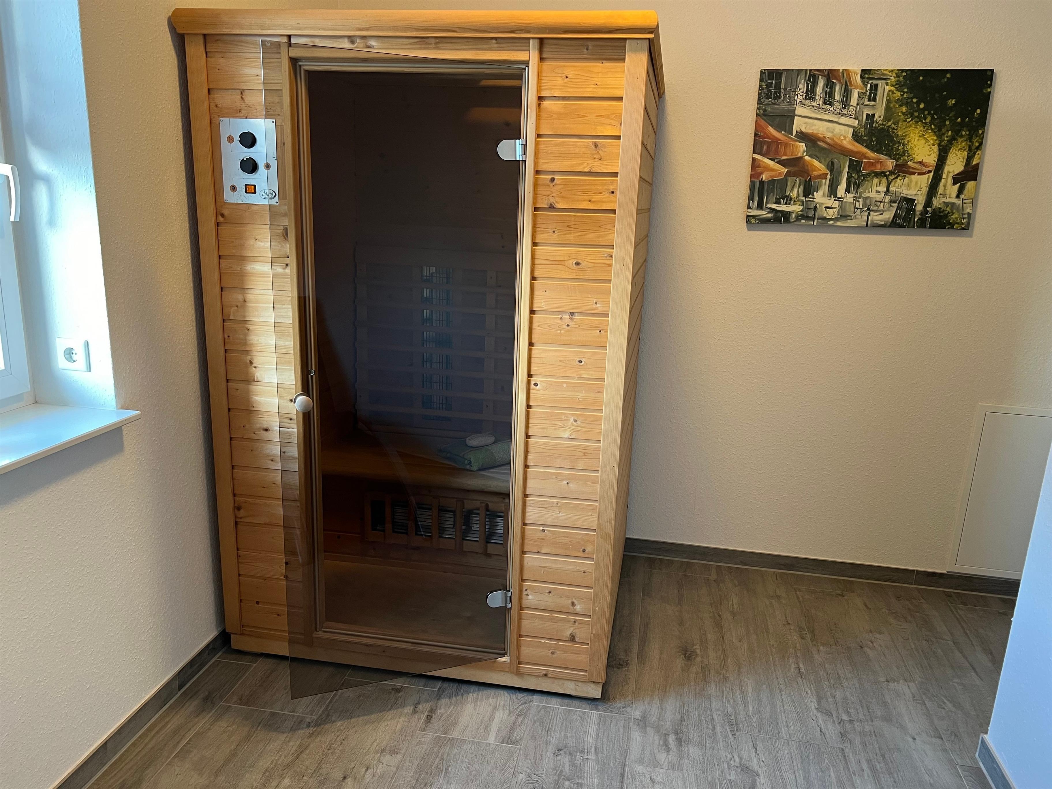Besondere Highlights der Wohnung sind die zwei Smart-TV-Geräte, ein kleiner Safe für die Wertsachen und die Infrarotkabine in unserem Wellnessraum.