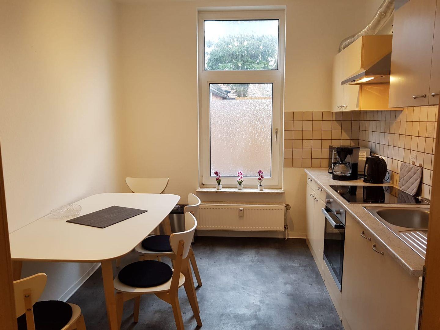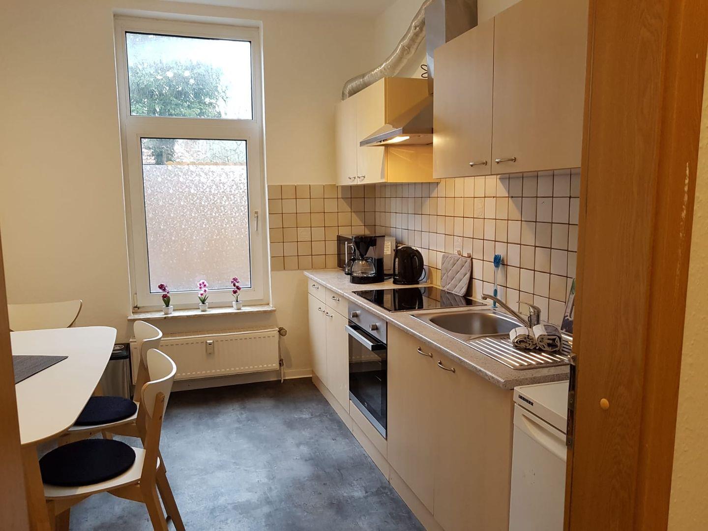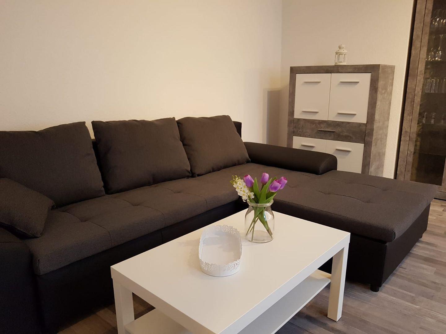 Ein gemütliches Sofa, ein Esstisch mit ausreichend Platz für gemeinsame Mahlzeiten und eine vollständig ausgestattete Küche laden zum Verweilen ein. In der Küche finden Sie alles, was Sie für die Zubereitung Ihrer Lieblingsgerichte benötigen: von einem Cerankochfeld über eine Mikrowelle und einen Kühlschrank mit Gefrierfach bis hin zu nützlichen Küchenutensilien. Nach einem erlebnisreichen Tag können Sie im angrenzenden Badezimmer mit Dusche und Badewanne entspannen, das mit einem Haartrockner und einem Kosmetikspiegel ausgestattet ist.