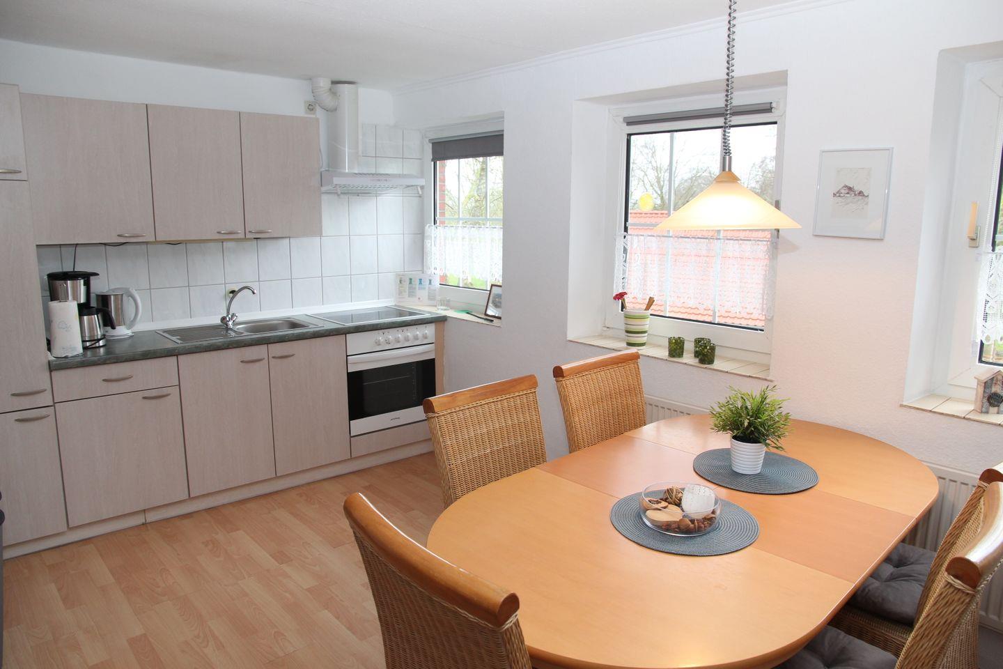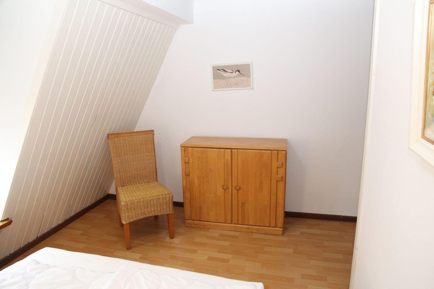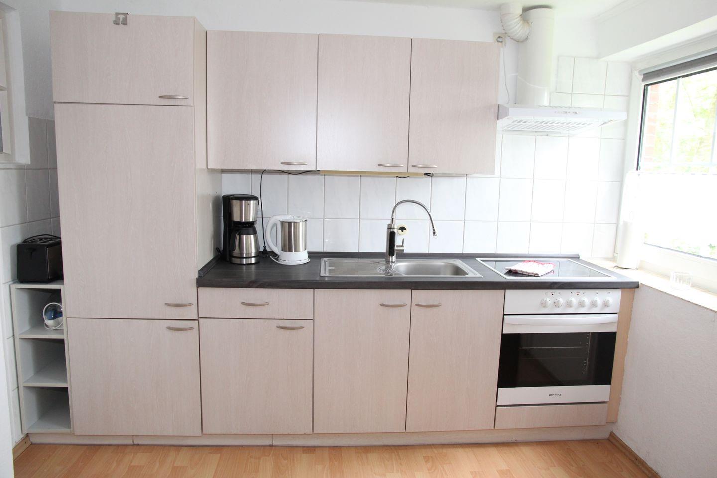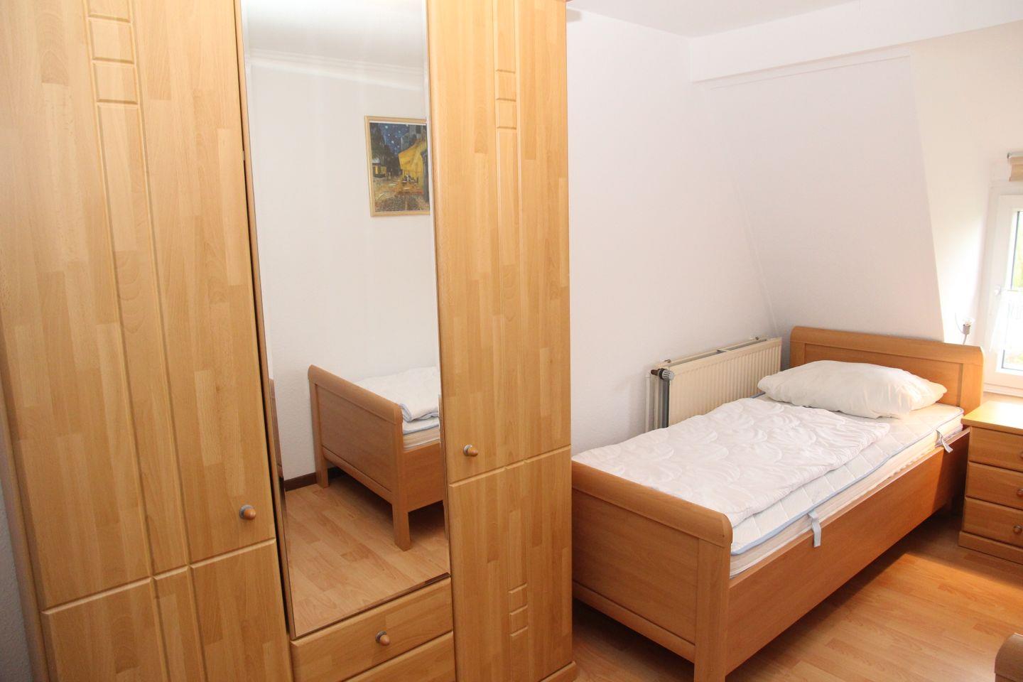 Die Obergeschosswohnung "Daike" bietet auf großzügigen 76qm Platz für bis zu 4 Personen. Hier finden Sie einen gemütlichen Wohn-Essbereich mit zwei Sofas, Fernseher und Esstisch. Direkt angrenzend in der Küchenzeile finden Sie Cerankochfeld, Backofen, Kühlschrank, Wasserkocher, Toaster, Kaffeemaschine, Senseo-Padmaschine und Spülbecken. Bitte beachten Sie, dass keine Spülmaschine und auch kein Gefrierfach vorhanden sind. Das modernisierte Badezimmer verfügt über eine Dusche mit niedrigem Einstieg, Waschbecken und WC. In einem der Schlafzimmer finden Sie ein 1,40m Doppelbett, in dem anderen sind zwei Einzelbetten, ein kostenfreies Babybett und ein Kleiderschrank vorhanden.