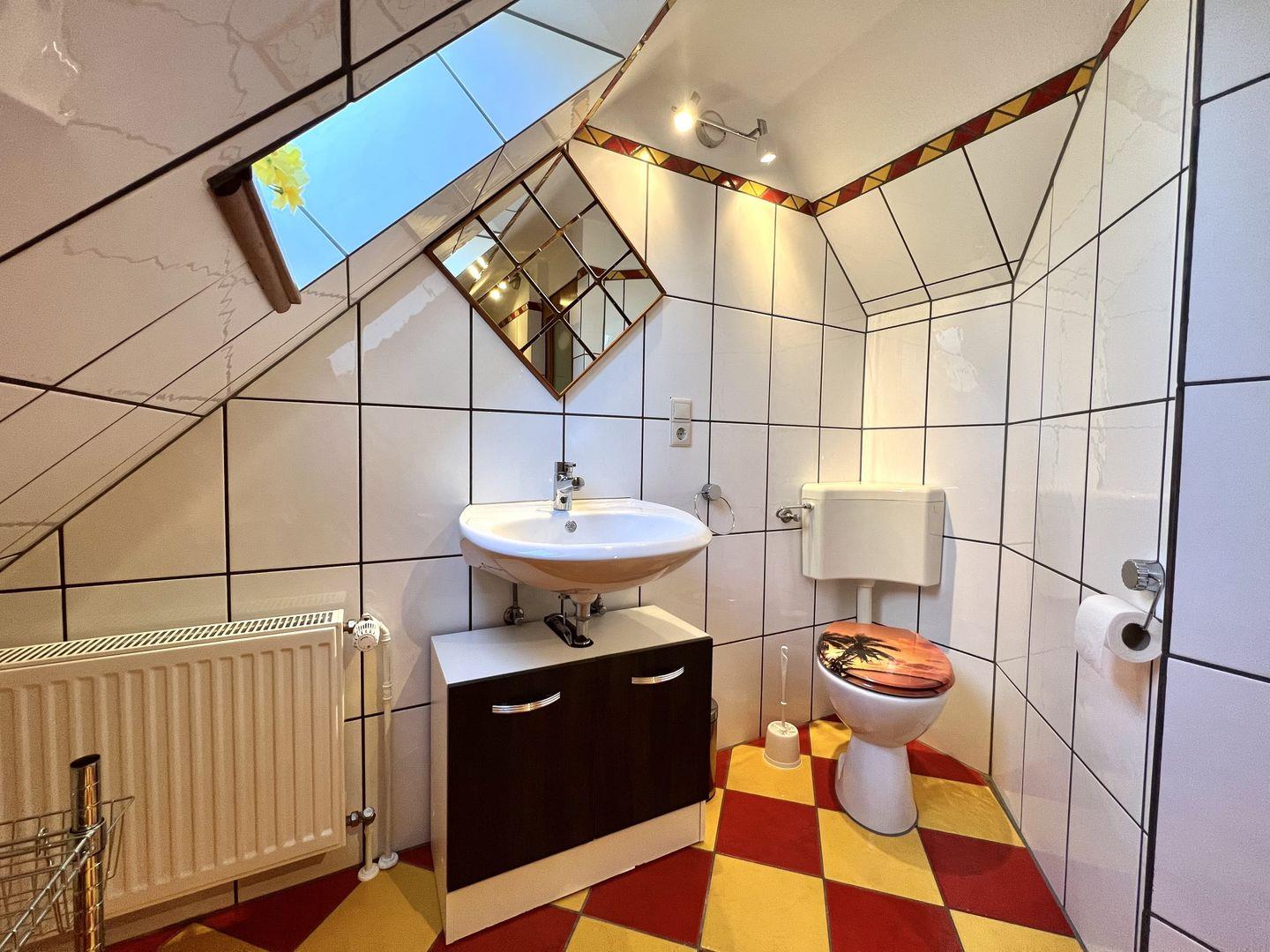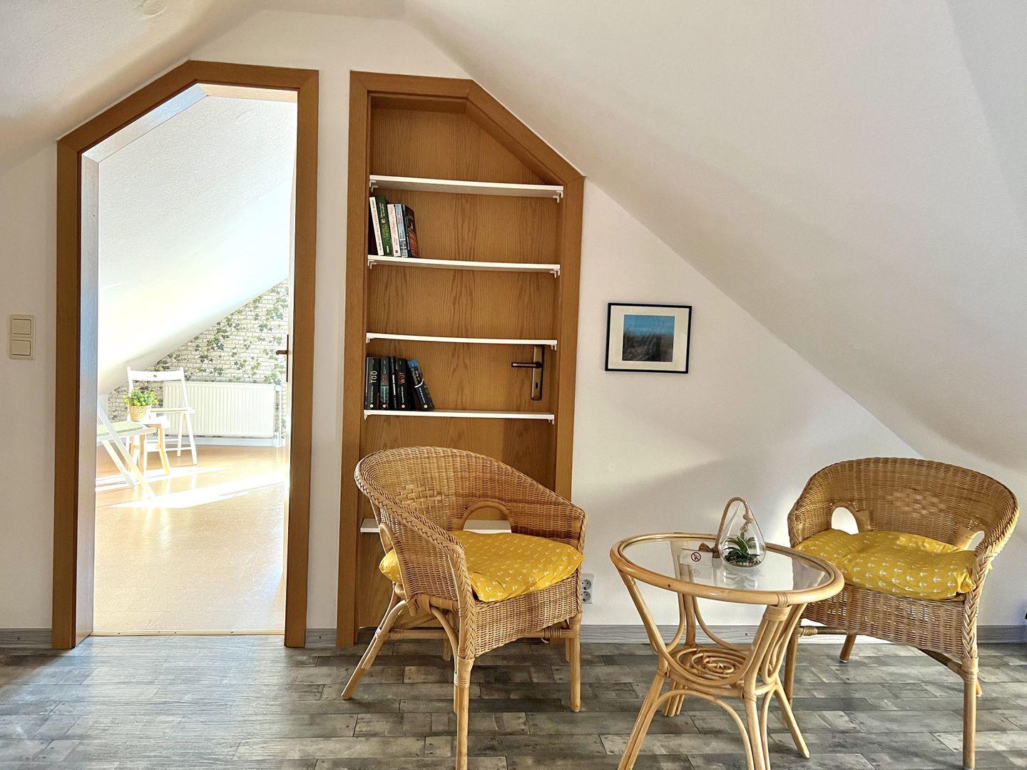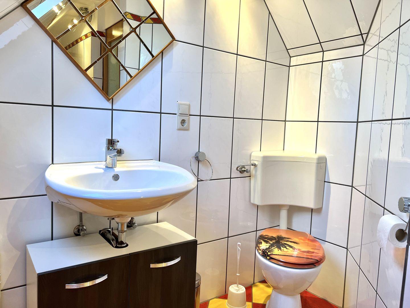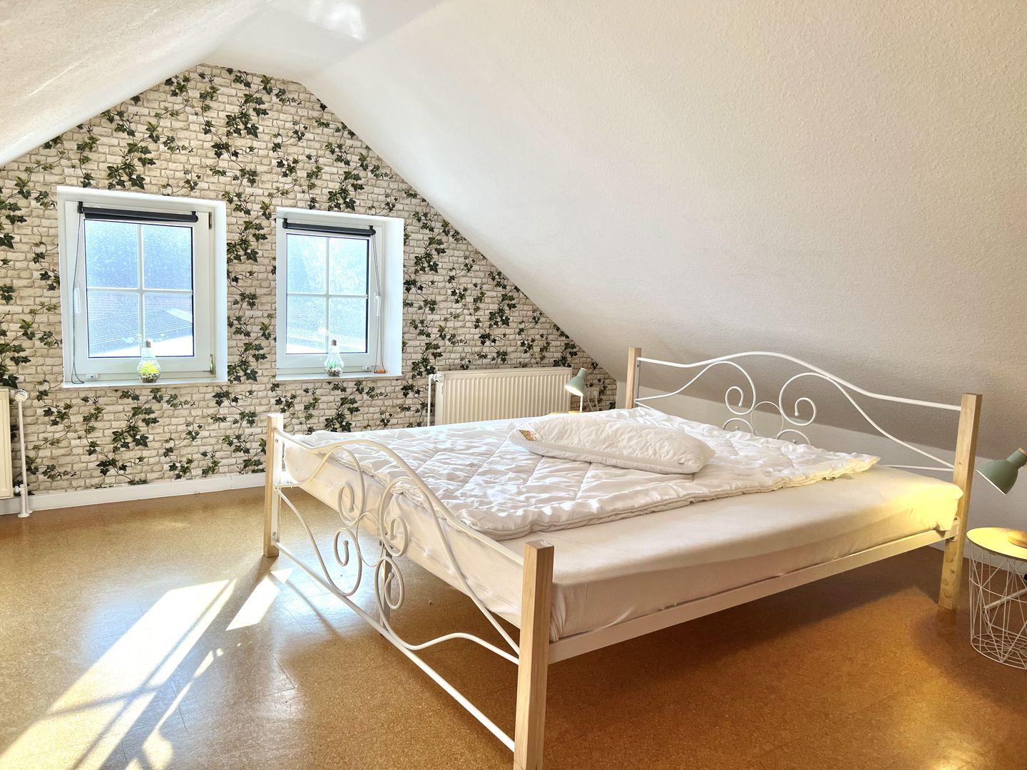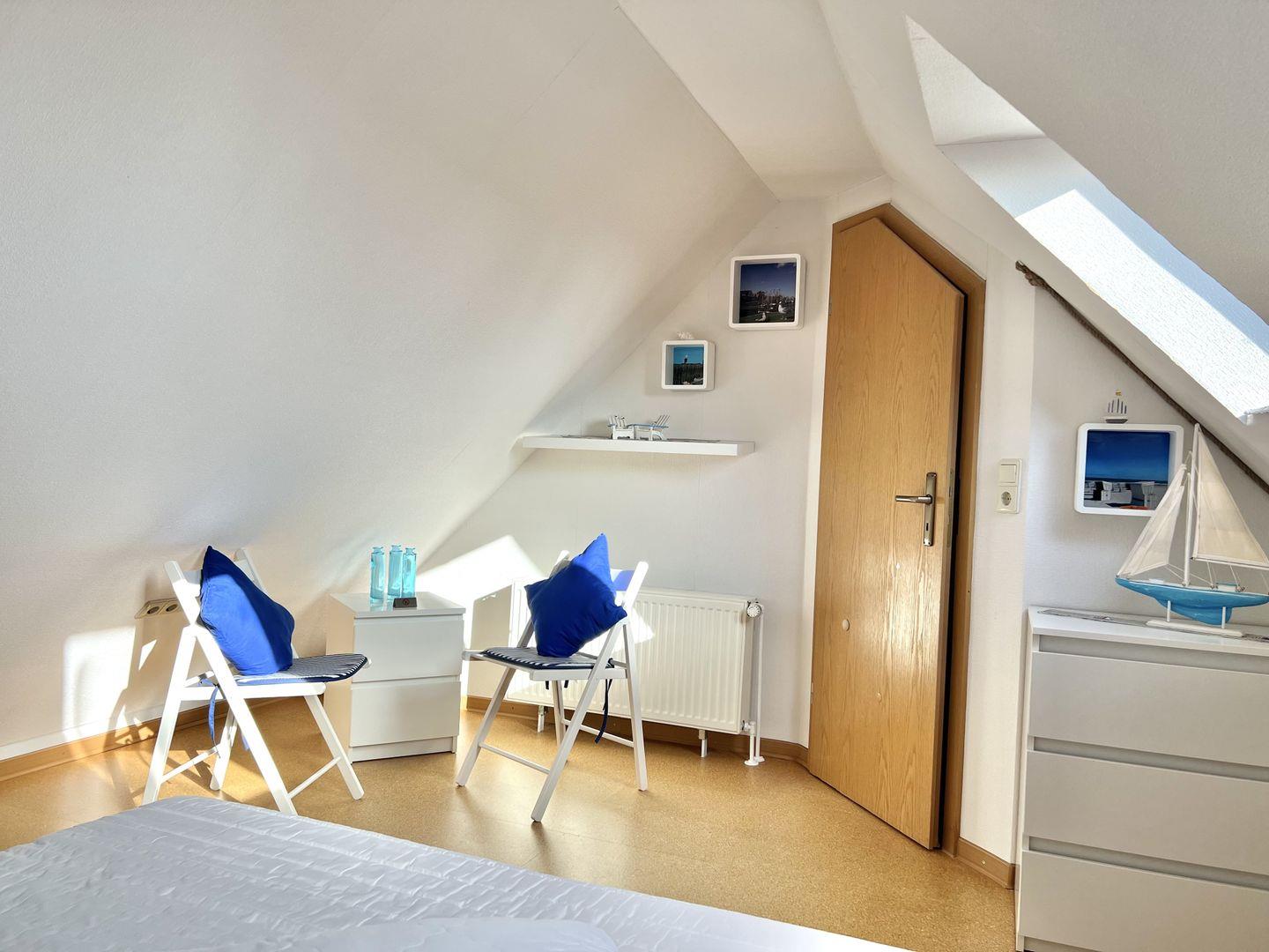 Kommen Sie herein! Vom Flur gelangen Sie in das 1. Schlafzimmer mit Boxspringbett (Matratzengröße 1,80 x 2 m, großes Laken erforderlich). Hier verbringen Sie erholsame Nächte. Nebenan befindet sich das Badezimmer mit begehbarer Dusche. Im hellen Wohnzimmer können Sie auf der großen Couch relaxen und kuschelige Abende verbringen. Das Herzstück ist die Küche mit dem Essbereich. Die Landhausküche bietet alles, was der Hobbykoch benötigt, um ostfriesische Gerichte zu kochen und am großen Esstisch zu servieren. Der Essbereich lädt außerdem zum klönen, Tee trinken und zu Spieleabende ein. Von der Küche erreichen Sie die überdachte Terrasse. Genießen Sie die Ruhe und den Blick in den Garten. Lassen Sie hier die Seele baumeln. Der Garten ist teilweise komplett eingezäunt. Die Treppe rauf bietet eine kleine Leseecke Platz zum Schmökern. Hier finden Sie 2 weitere Schlafräume, die sehr schön ausgestattet sind. Im ersten Schlafzimmer steht ein Bett der Größe 1,40 x 2 m (großes Laken erforderlich), im zweiten befindet sich ein 1,80 x 2 m Bett (Matratzengröße 0,90 x 2 m). Ein Bad mit Eckbadewanne und Brause komplettiert die obere Etage. In jedem Raum finden Sie eine individuell tapezierte Wand, die das Haus einzigartig macht. WLAN ist verfügbar. Eine Garage und ein PKW-Stellplatz sind ebenfalls vorhanden. An einer Wallbox können Ihre E-Autos gegen Gebühr geladen werden. Nebenan gibt es noch einen Raum zum Abstellen Ihrer mitgebrachten Fahrräder. E-Bikes können dort ebenfalls am Strom angeschlossen werden.