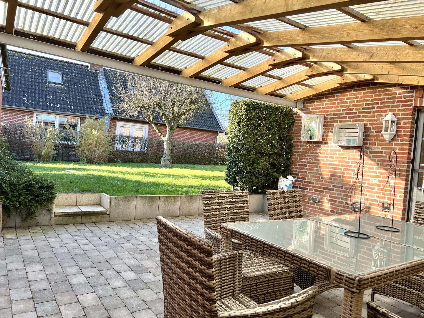 Modernes Ferienhaus in Krummhörn mit Garten, Terrasse und Nähe zum Strand für erholsame Urlaubstage.