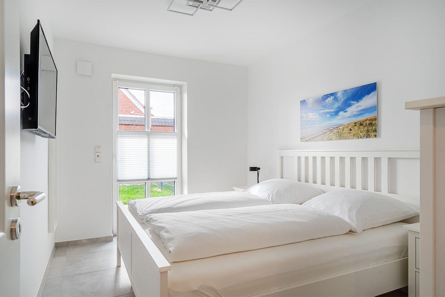 Zwei komfortable Schlafzimmer, die jeweils mit einem Fernseher ausgestattet sind