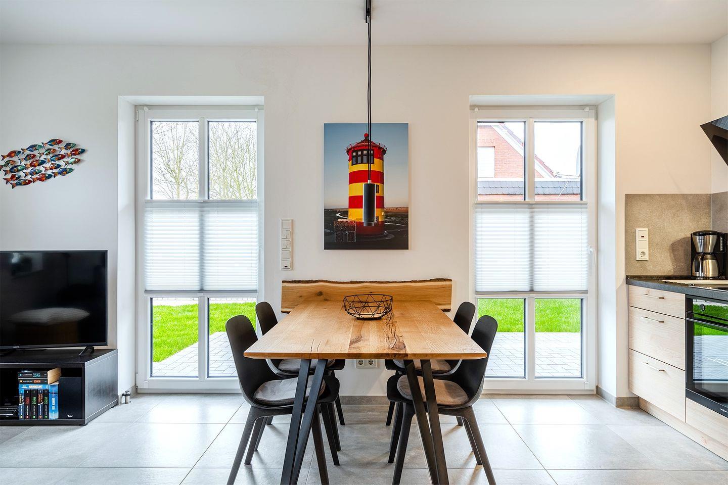 Moderne Ferienwohnung "Friesenlust" in Greetsiel bietet Komfort und Entspannung an der Nordsee.