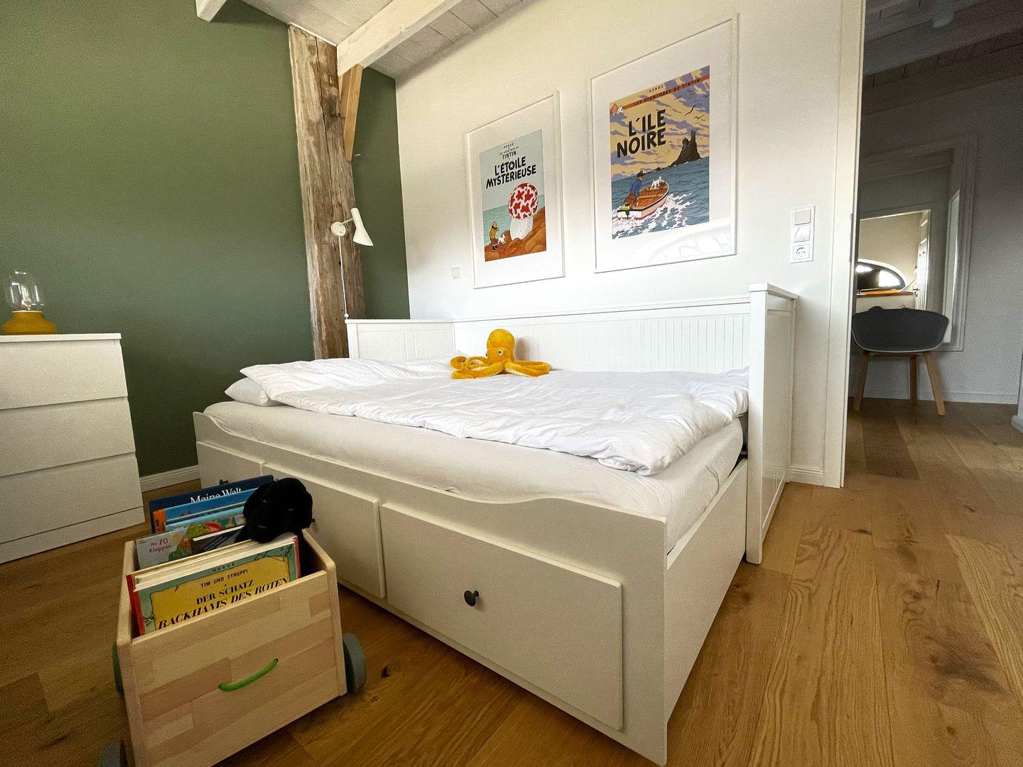 Kinder sind selbstverständlich ebenfalls herzlich willkommen und können sich im Kinderzimmer oder auf der Wiese vor der Terrasse mit Spielzeug und Spaß austoben. Für die ganz kleinen Gäste stehen zudem ein Kinderhochstuhl und ein Babybett zur Verfügung. Alle zugänglichen Steckdosen in der Ferienwohnung sind mit einem integrierten Kinderschutz ausgestattet. Zudem sind Nachtlichter mit Bewegungsmelder vorhanden.