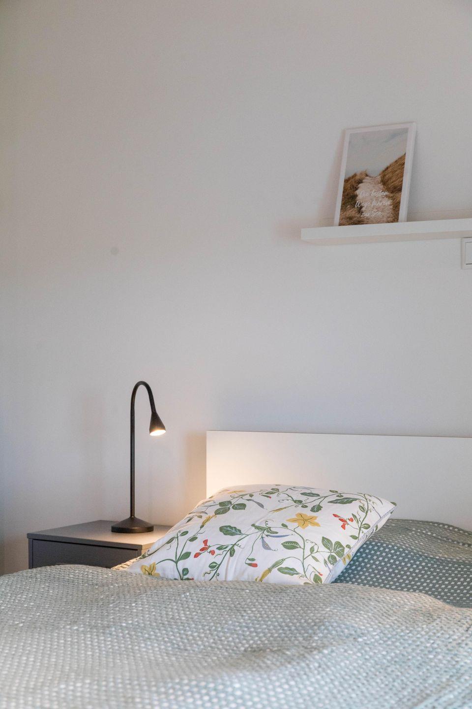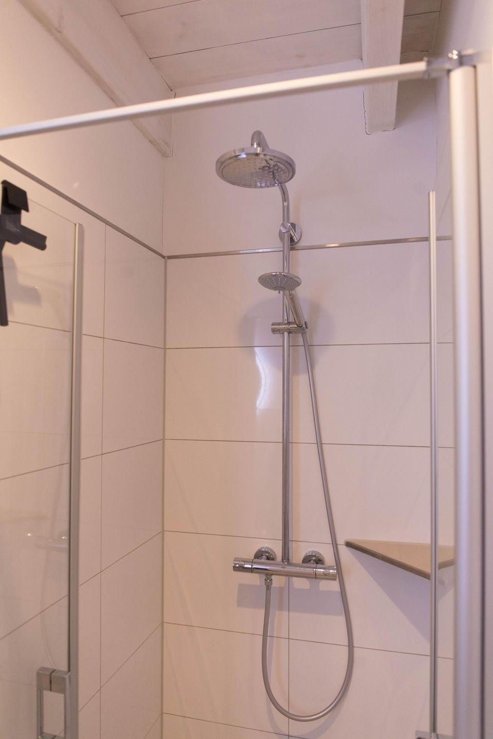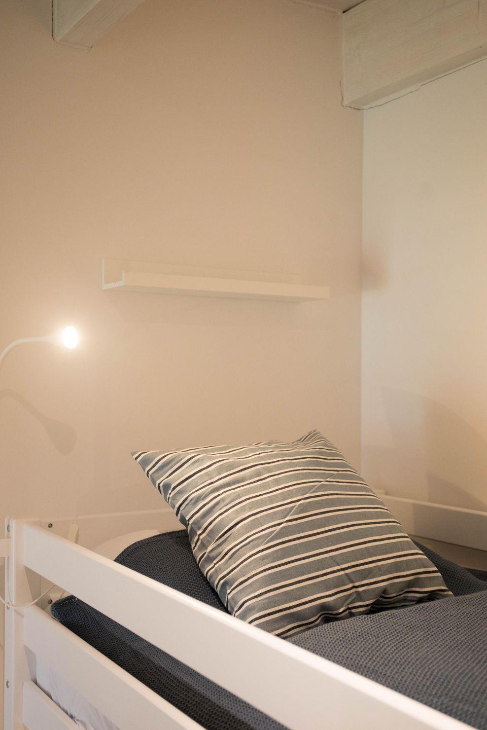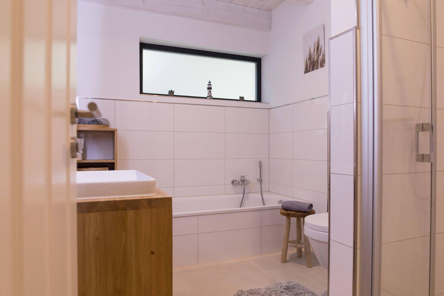 Das Obergeschoss verfügt über zwei geschmackvoll eingerichtete Schlafzimmer. Das Elternschlafzimmer verfügt über ein bequemes Doppelbett sowie einen ausreichenden Kleiderschrank. Im Kinderzimmer stehen bei Bedarf bis zu vier Schlafmöglichkeiten (inkl. zweier Stapelbetten) sowie eine Kommode zur Verfügung. Beide Schlafzimmer verfügen über Verdunklungsrollos. Das moderne Bad ist mit einer Badewanne, einer bodenebenen Dusche, WC und einer Handtuchheizung ausgestattet.
