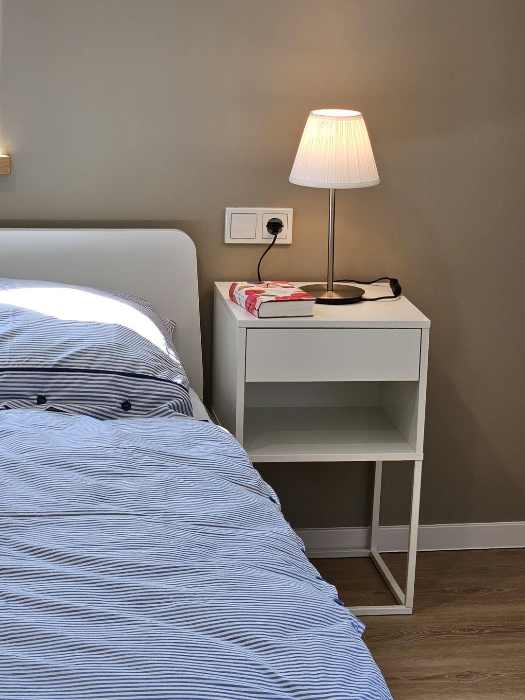 Das großzügige Zuhause erstreckt sich über zwei Etagen und ist mit allem ausgestattet, was Sie für einen komfortablen Aufenthalt benötigen. Die helle und offene Küche, die nahtlos in den Wohnbereich übergeht, ist modern gestaltet und verfügt über alle notwendigen Utensilien, um Ihre Lieblingsgerichte zuzubereiten. Hier finden Sie einen Backofen, ein 4-Platten-Induktionskochfeld, eine Spülmaschine sowie eine Espressomaschine. Der Esstisch bietet genug Platz für gemeinsame Mahlzeiten und gesellige Abende.