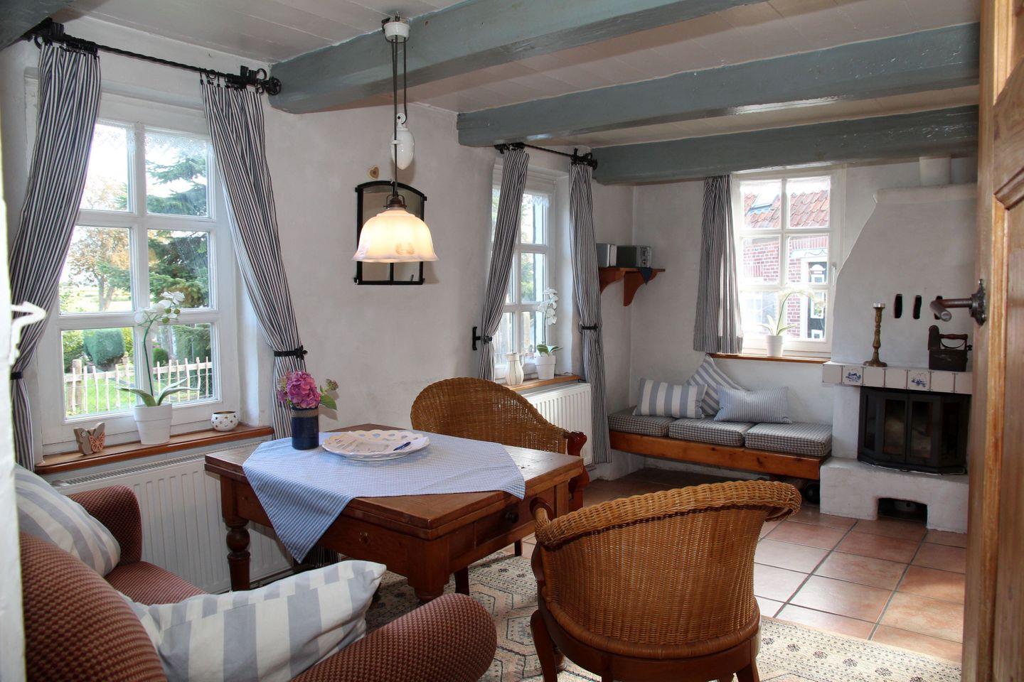 Bitte beachten Sie: Das historische Friesenhaus wurde um 1770 erbaut, daher sind einige Decken niedriger als in modernen Häusern. Der besondere Charme des alten Gebäudes macht das „Kieke Wiet“ jedoch zu einem einzigartigen Rückzugsort – perfekt für alle, die Ruhe, Gemütlichkeit und das echte Ostfriesland-Flair suchen.