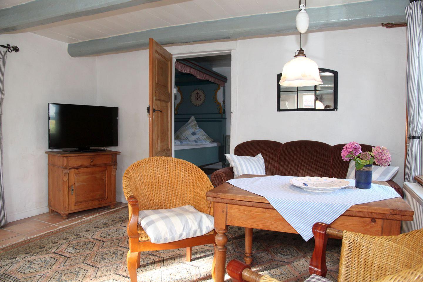 Das im 18. Jahrhundert erbaute und sorgfältig modernisierte Ferienhaus bietet eine gelungene Kombination aus historischem Charakter und modernem Wohnkomfort. Die alten Holzbalken und traditionellen Butzenscheiben verleihen dem Haus seinen besonderen Charme, während eine hochwertige Ausstattung für entspannte Urlaubstage sorgt.