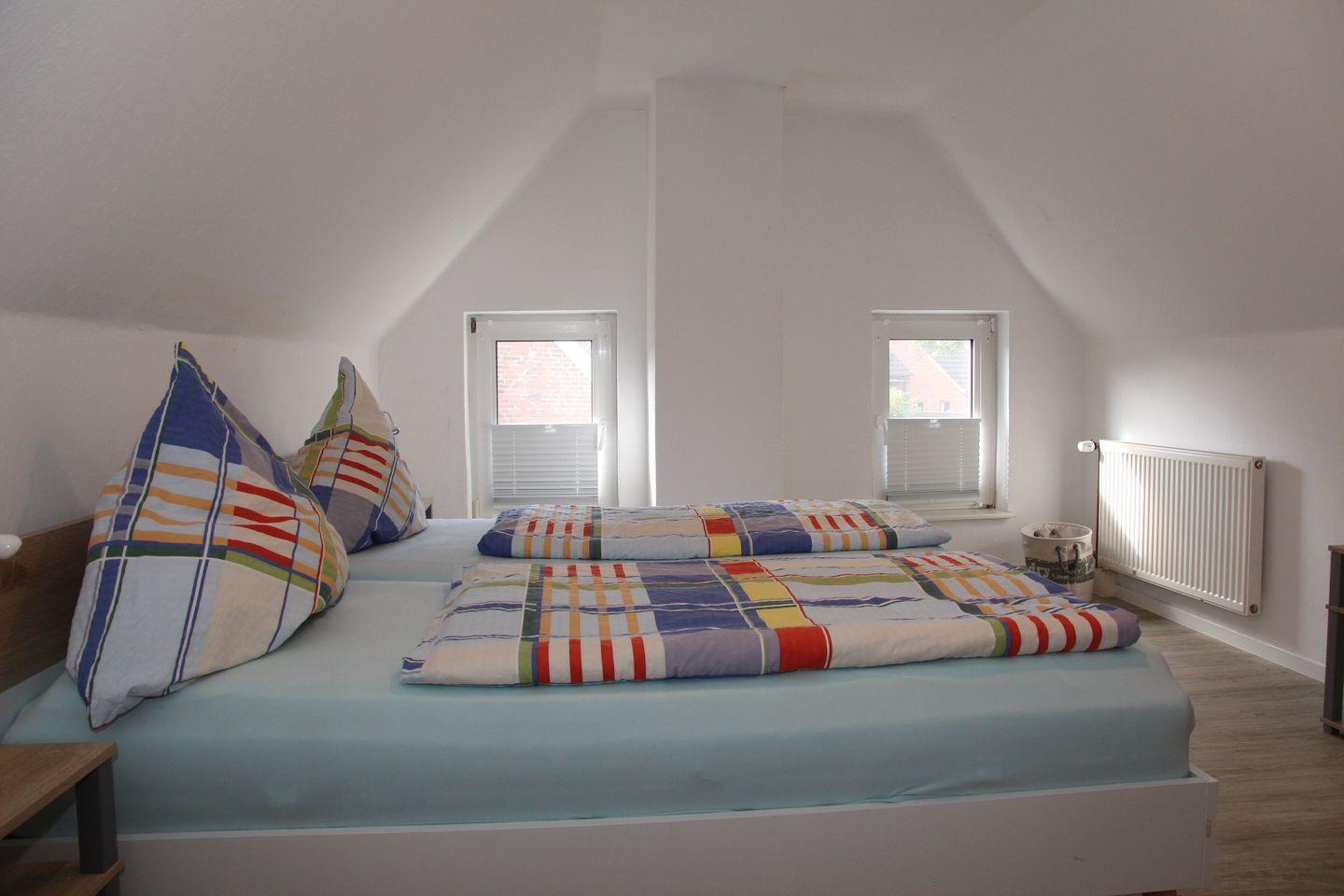 Das historische Friesenhaus wurde mit viel Liebe zum Detail modernisiert und verbindet traditionellen Charakter mit zeitgemäßem Wohnkomfort. Im Erdgeschoss befindet sich ein offener Wohn- und Essbereich mit Sitzgelegenheiten, TV und Kaminofen, der besonders an kühlen Tagen für eine gemütliche Atmosphäre sorgt. Die Küche ist hochwertig ausgestattet mit Spülmaschine, Mikrowelle, Toaster, Wasserkocher, Kaffeemaschine, Nespressomaschine, Herd, Backofen sowie einem Kühlschrank mit Gefrierfach – ideal für gemeinsame Kochmomente. Ebenfalls im Erdgeschoss liegen das moderne Badezimmer mit begehbarer Dusche und Föhn, das separate WC sowie ein Abstellraum.