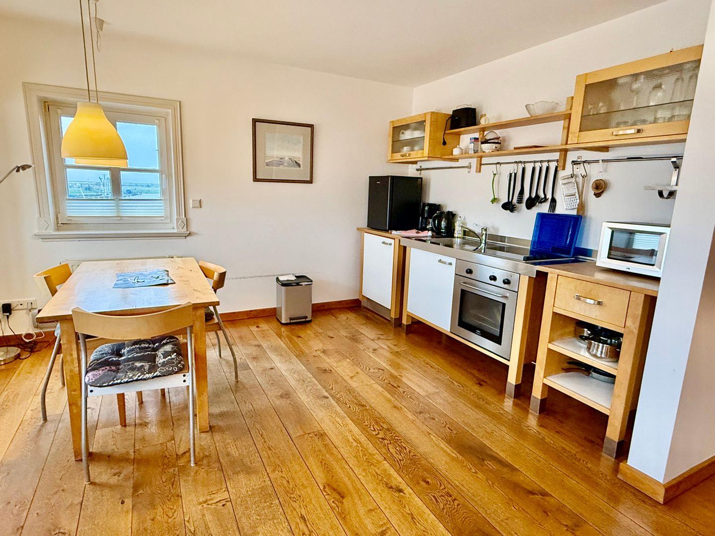 Die Ferienwohnung „Jennelt“ liegt im 1. Obergeschoss zur Hafenseite und bietet Platz für 2 Personen.
