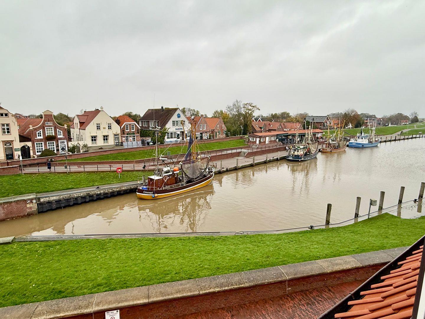 Charmante Ferienwohnung Uttum im Amtmannshaus, direkt am Greetsieler Hafen mit Blick auf die Fischkutter.