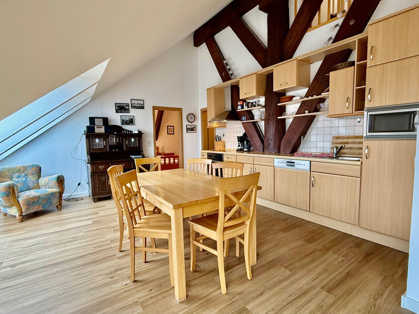 Komfortable Ferienwohnung Visquard im Amtmannshaus mit Hafenblick in Greetsiel, ideal für bis zu 4 Personen auf zwei Ebenen.