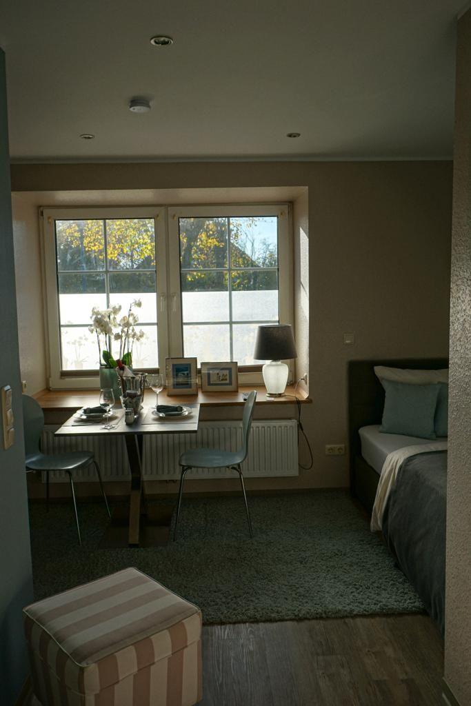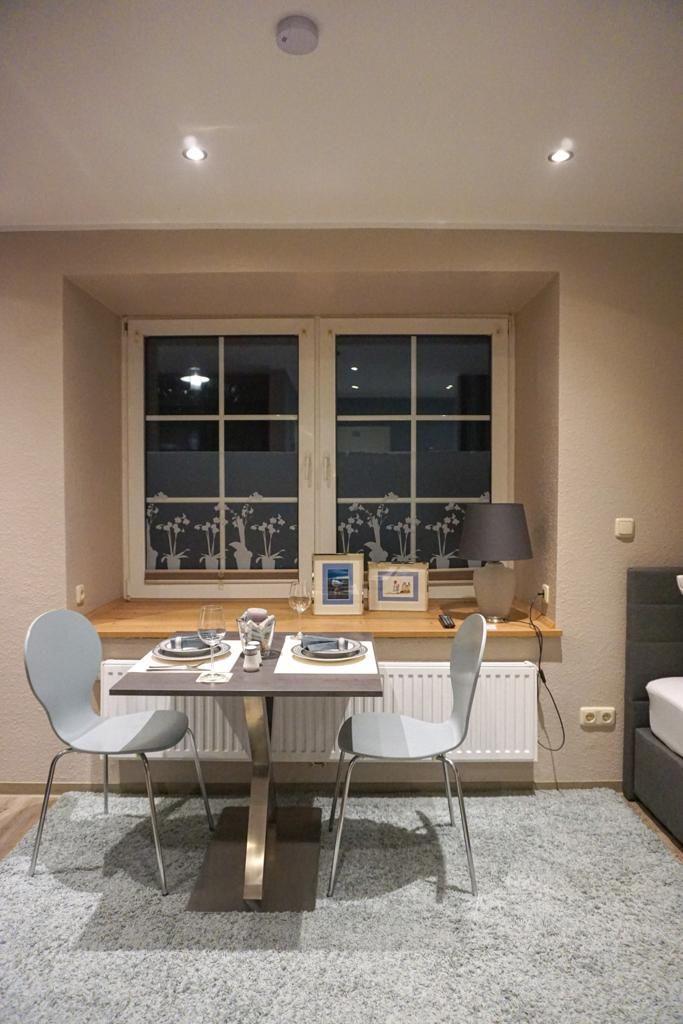 Das Apartment ist als modernes 1-Zimmer-Domizil konzipiert und überzeugt durch eine klare, funktionale Ausstattung. Ein 1,60?m breites, bequemes Bett, ein Fernseher sowie ein Essplatz für zwei Personen schaffen eine angenehme Wohnatmosphäre. Die kompakte Küche ist gut ausgestattet und ermöglicht die Zubereitung kleiner Mahlzeiten (eine Spülmaschine ist nicht vorhanden). Das angrenzende moderne Duschbad ergänzt die Wohnung. Dank der Lage im Erdgeschoss und der barrierearmen Gestaltung eignet sich die Wohnung auch für Gäste mit eingeschränkter Mobilität.