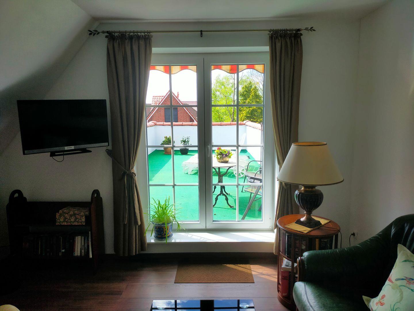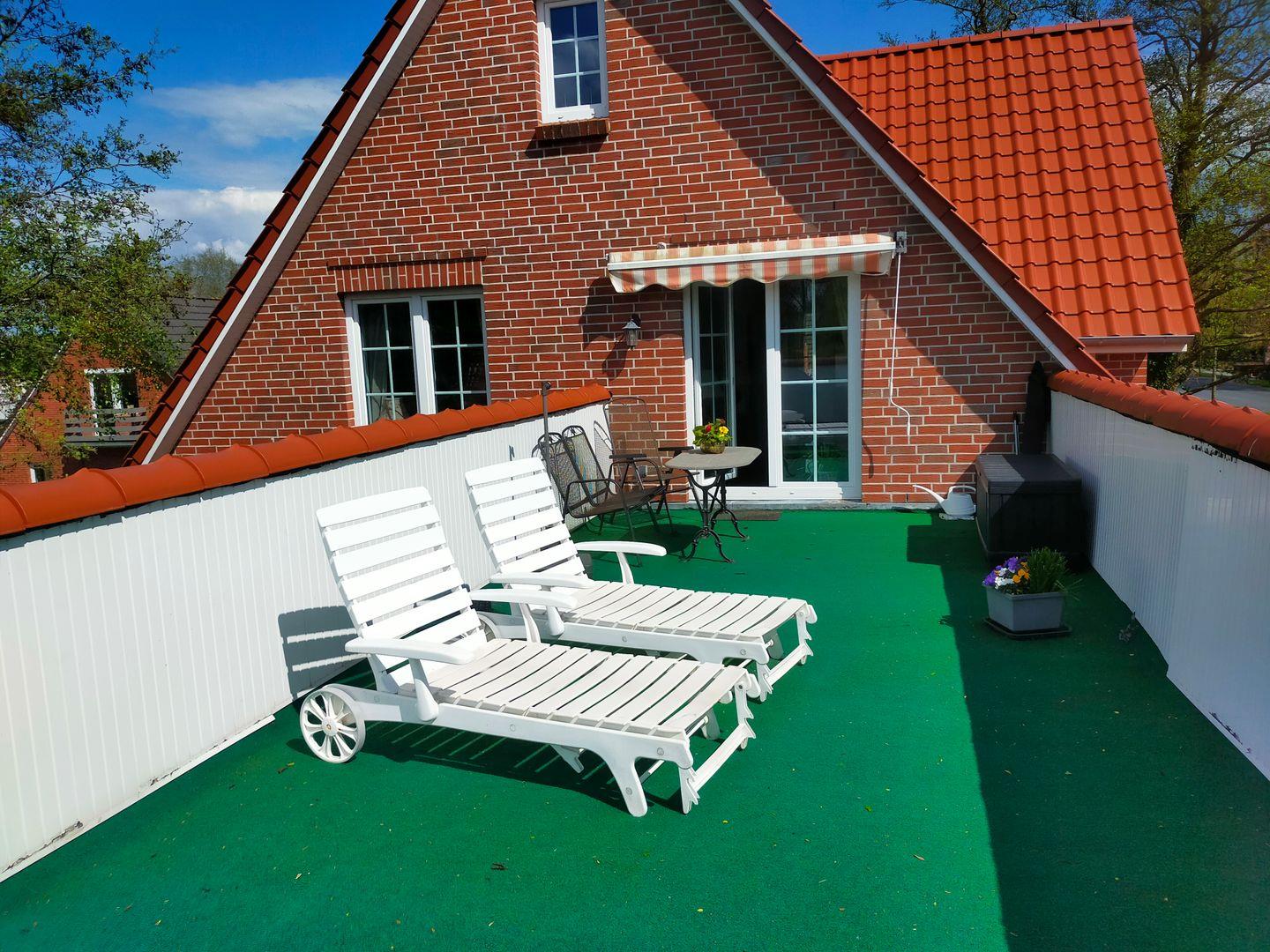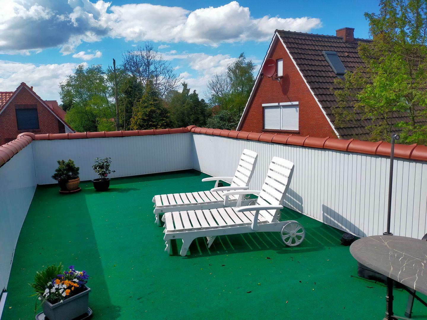 Gemütliche Ferienwohnung Johanna in Lütetsburg mit großer Dachterrasse und moderner Ausstattung für erholsame Nordsee-Tage.