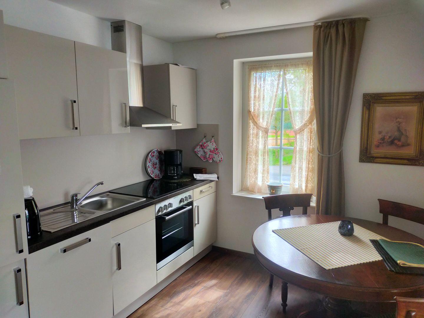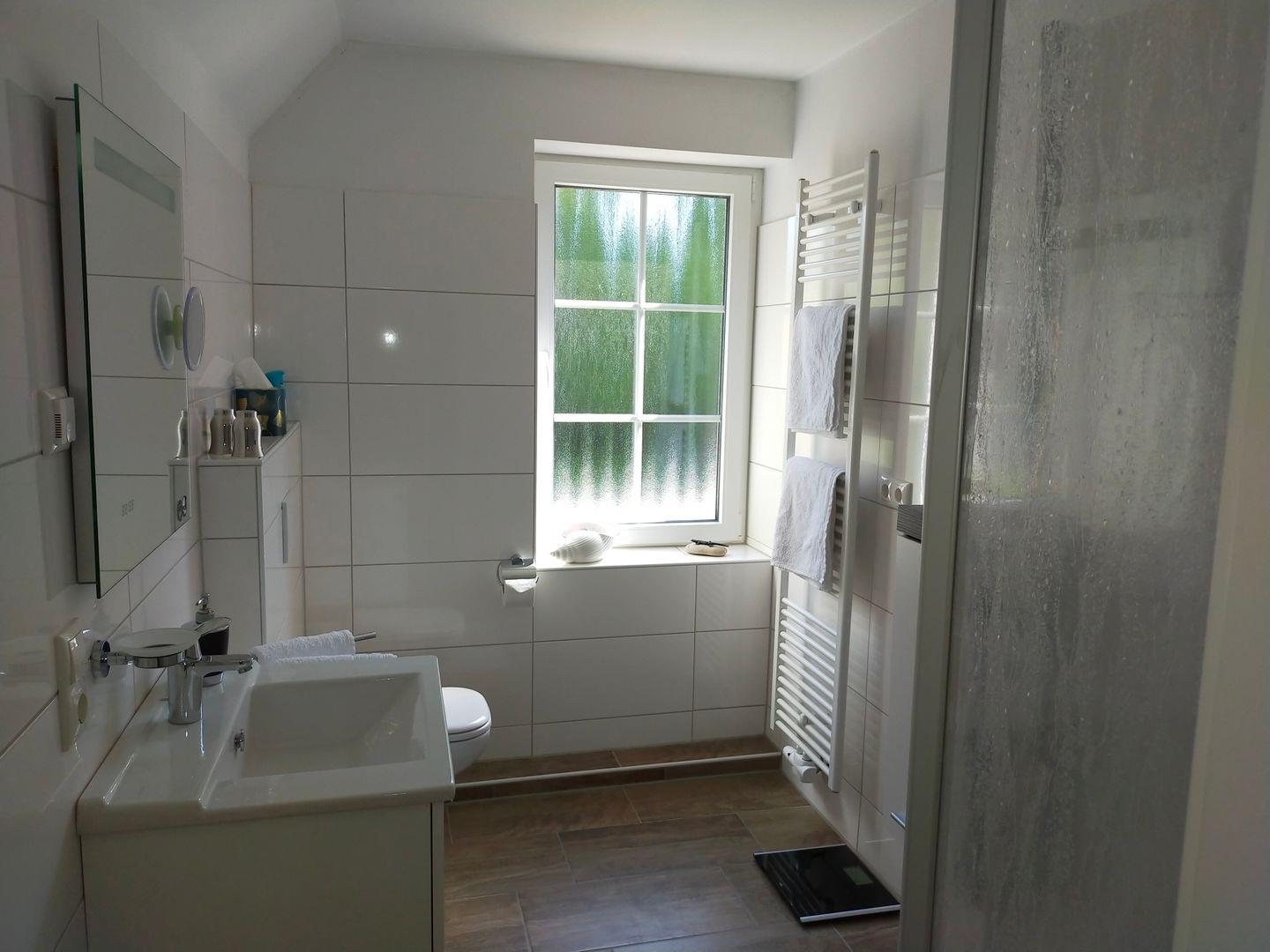 Herzlich Willkommen in der Ferienwohnung Johanna in der Ortschaft Lütetsburg. Über einen separaten Eingang kommen Sie in die helle Oberwohnung. Der gemütliche Wohnbereich versprüht durch seine Ausstattung einen besonderen Charme. Auf der bequemen Couch können Sie sich durch die kleine Bibliothek schmökern oder sich spannende Filme am Flachbild-TV anschauen. In der neuwertigen Küche kann sich der Hobbykoch austoben und ostfriesische Speisen zubereiten, die er dann am runden Esstisch servieren kann. Ein separates Schlafzimmer mit Doppelbett (mit hochwertigen Daunendecken) steht zum Träumen und Erholen bereit. Bettwäsche und Handtücher sind inklusive. Nebenan befindet sich das helle moderne Bad mit ebenerdiger Dusche. Die ganze Wohnung ist mit Fußbodenheizung ausgestattet.