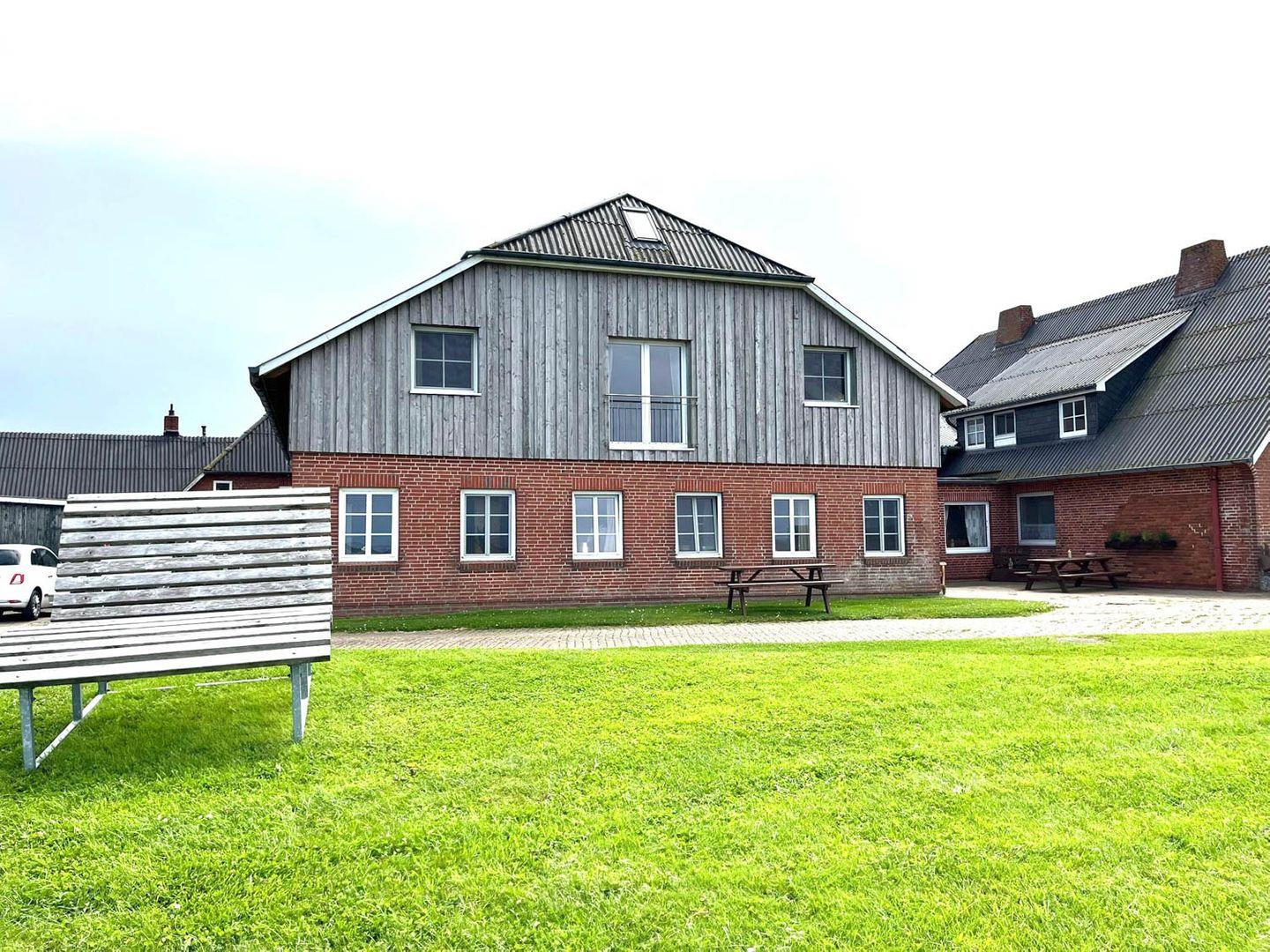 Gemütliche 3-Raum-Wohnung auf Langeneß Hallig mit Terrasse und Seeblick, ideal für erholsame Tage nahe dem Strand.