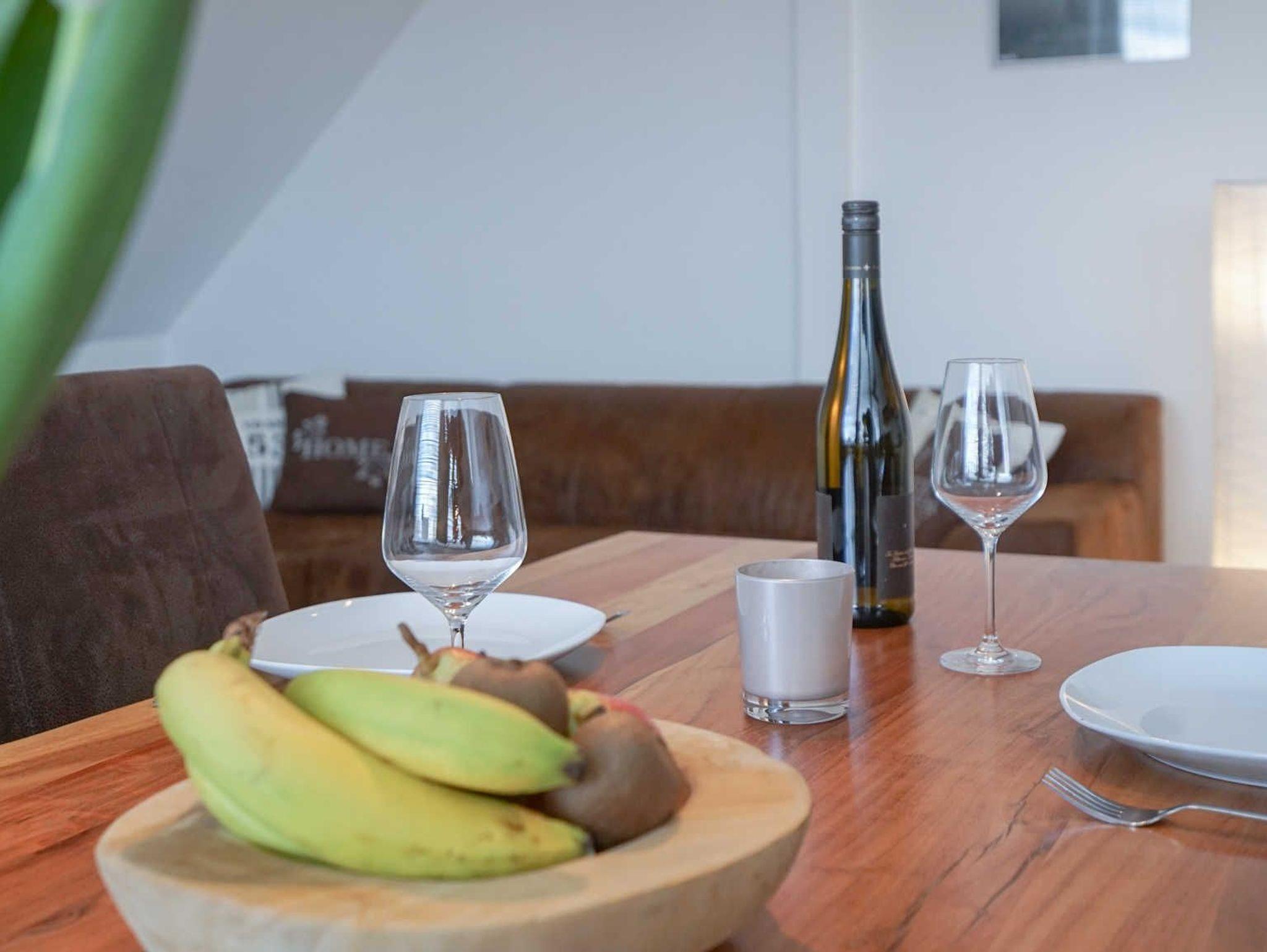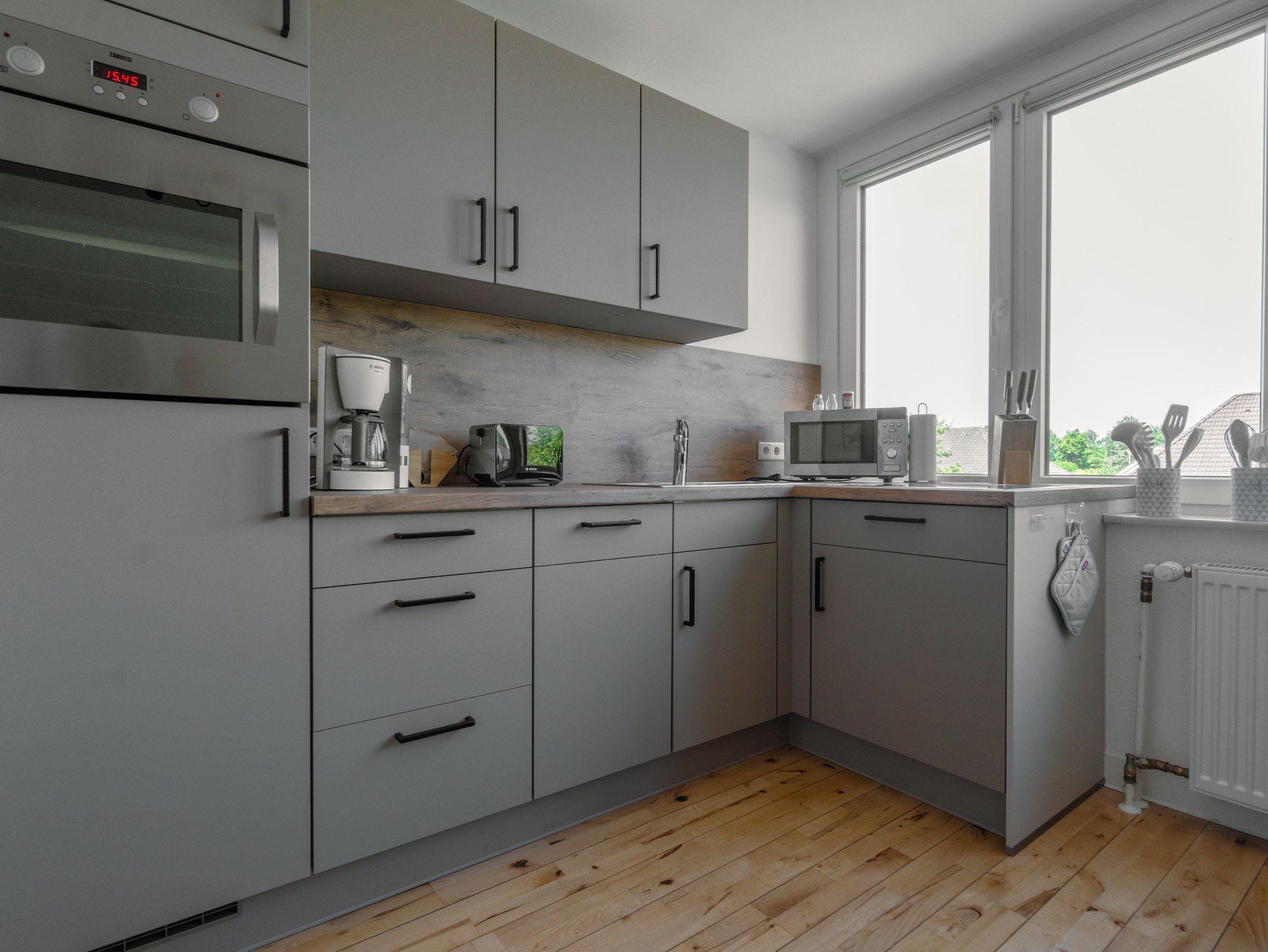Unsere Fewo Blinkfuer hat gemütliches Wohnzimmer mit einer Eckcouch (zur Schlafcouch ausziehbar), TV, WLAN-Radio und WLAN. Die Küche verfügt über eine EBK mit Geschirrspüler, E-Herd, Mikrowelle, Kaffeemaschine, Wasserkocher, Toaster sowie einen Backofen. Das Bad ist mit einer Dusche, Waschtisch und WC ausgestattet.