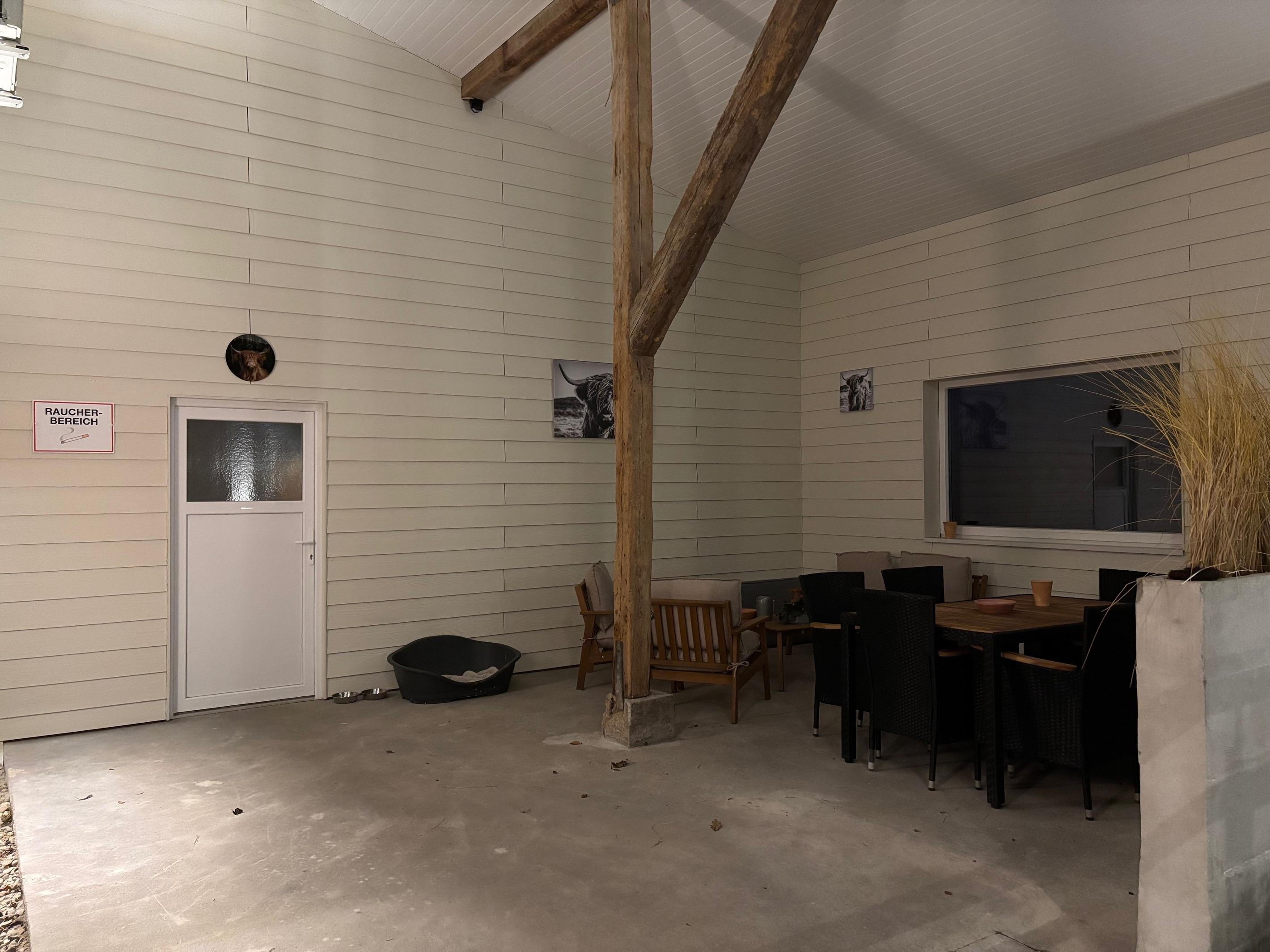 Unser Außengelände ist ebenso einladend gestaltet: Grillplätze laden zu gemütlichen Abenden im Freien ein, während Mini Shettys und Ziegen auf den Weiden grasen. Für Ihre Vierbeiner gibt es einen eingezäunten Hundefreilauf neben dem Grillplatz, sodass auch sie einen erholsamen Tag genießen können. Sollte das Wetter einmal nicht mitspielen, bietet unsere Aufenthaltshalle genügend Platz für unsere Feriengäste. Hier können Sie Snacks sowie Kalt- und Heißgetränke erwerben, und für die kleinen Besucher gibt es eine liebevoll eingerichtete Spielecke.