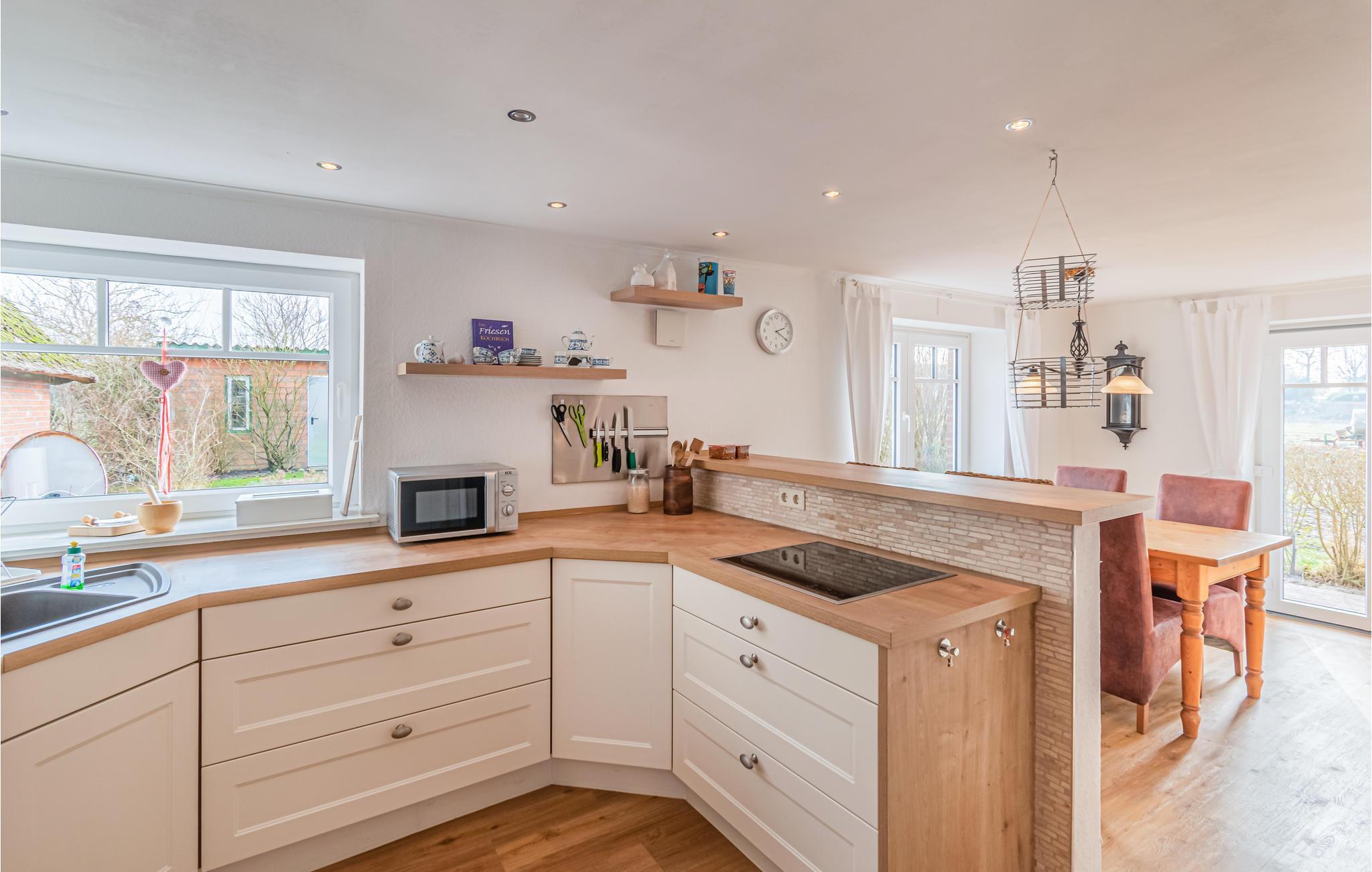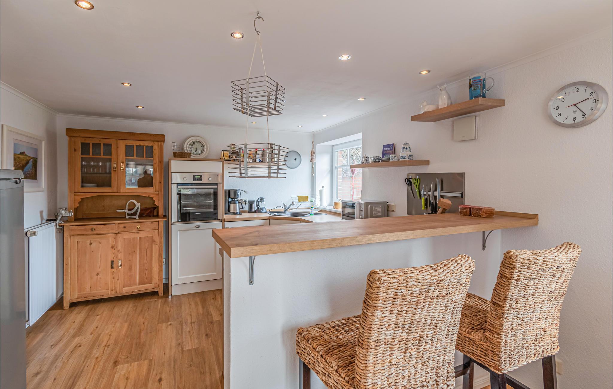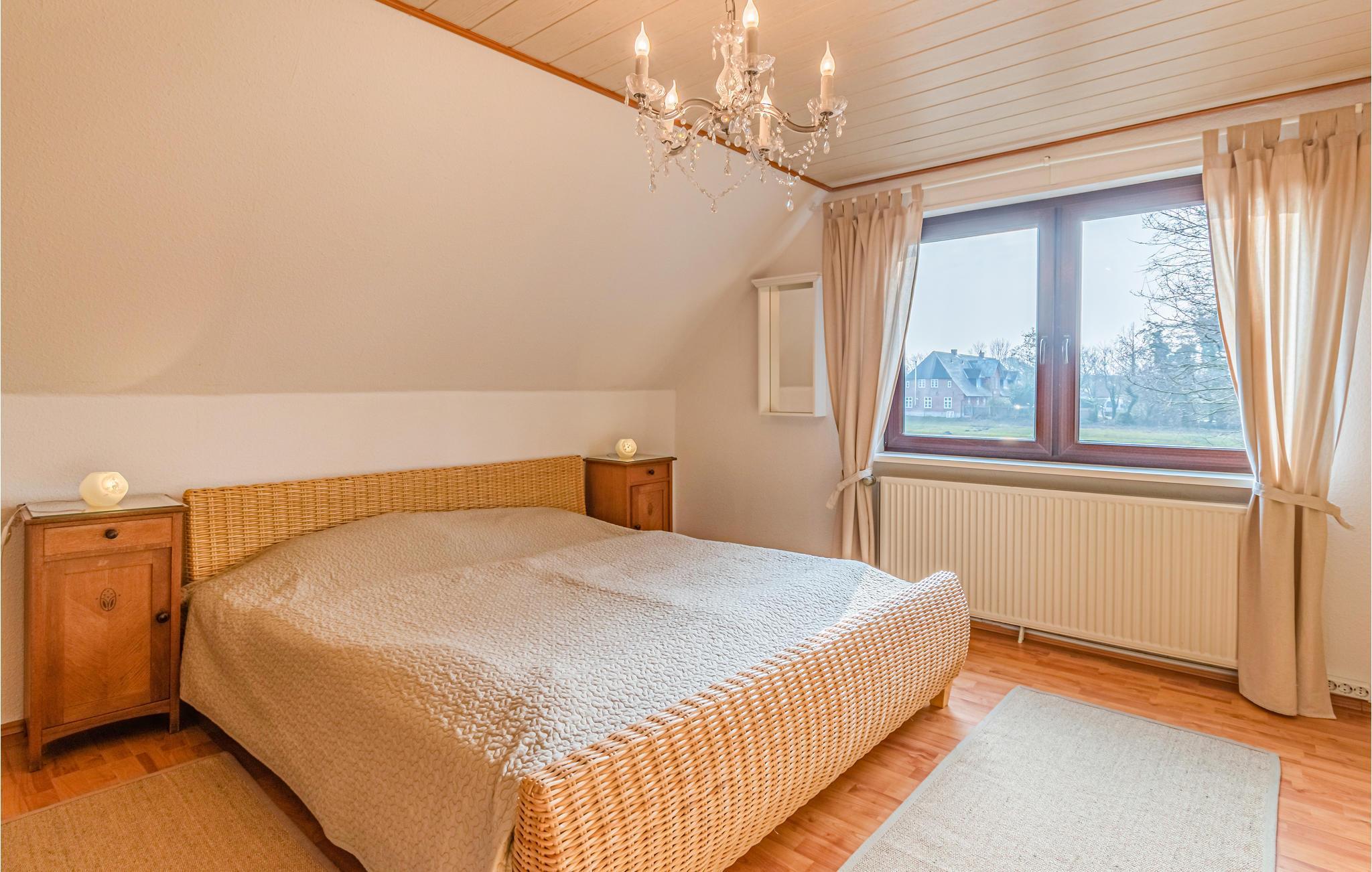 Gemütliches Ferienhaus an der Nordsee in der Nähe von Dagebüll und Schlüttsiel. In diesem Ferienhaus verbringen Sie einen entspannten Nordseeurlaub in ländlicher Lage in Langenhorn. Es bietet Platz für 3 Personen in den 2 Schlafzimmern, von denen das eine ein Doppelbett und das andere ein Einzelbett bietet. Ein Haustier ist im Ferienhaus ebenfalls willkommen. Das Haus hat einen großen Wohnbereich mit einer Tür zum Außenbereich rund um das Haus.