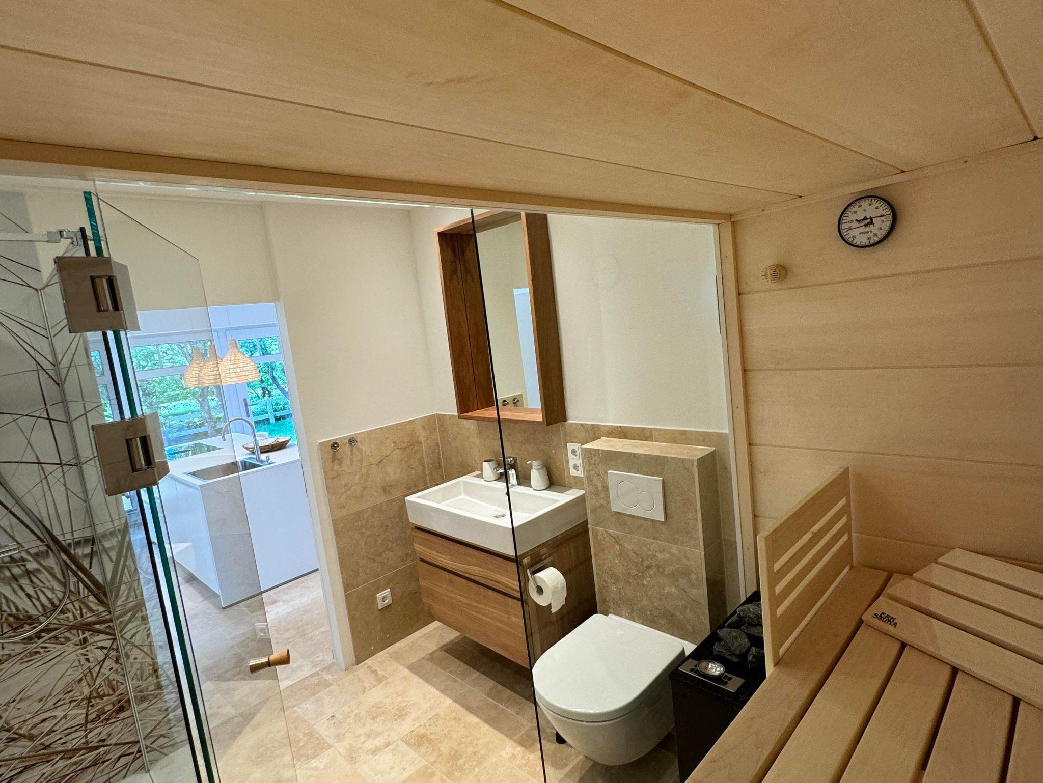 Durch den Einbau einer Fußbodenheizung und einer Sauna ist dies eine ganzjährig attraktive Unterkunft. Ein Kamin für gemütliche Winterabende ist in Panung.
