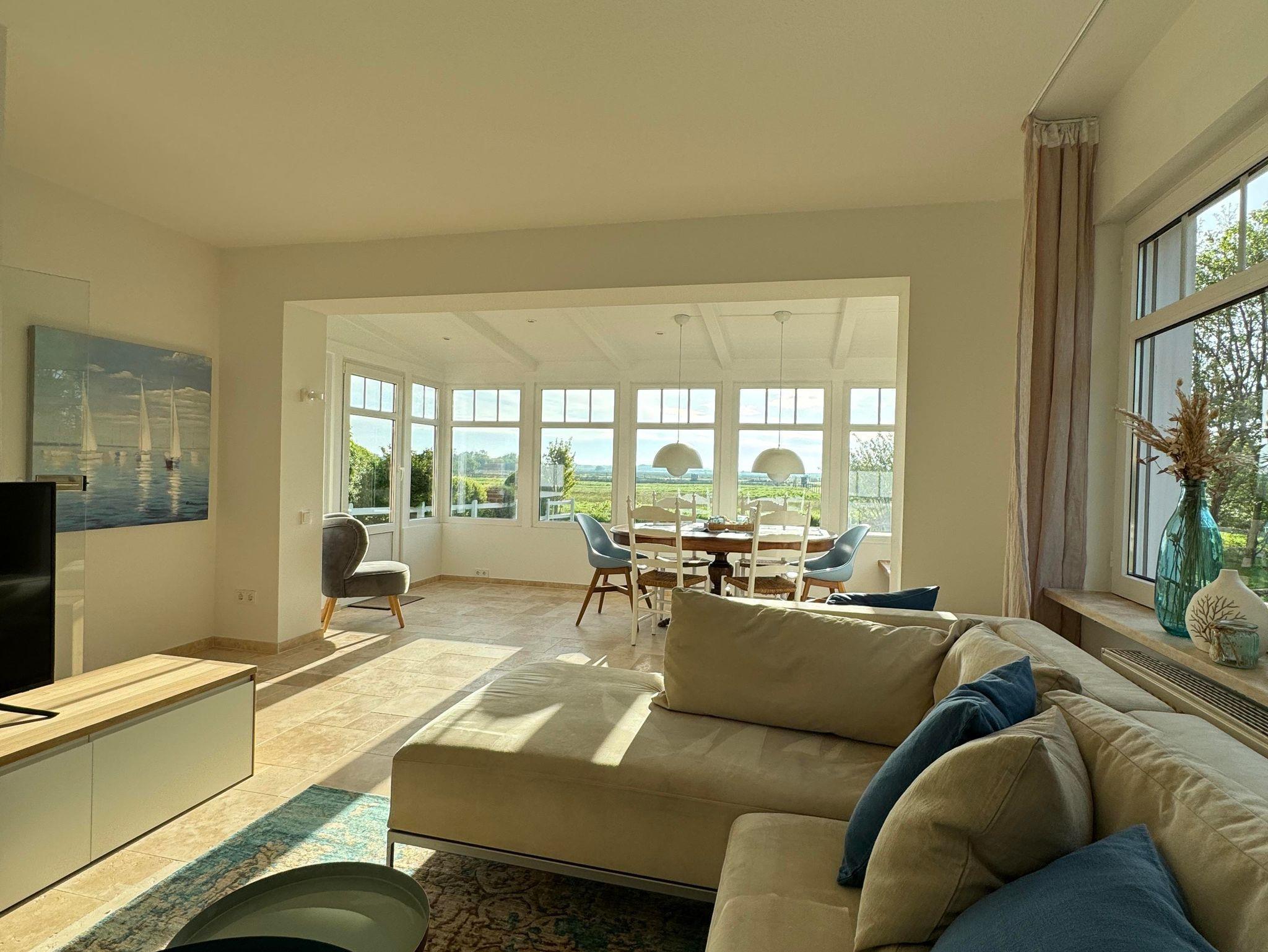 Ferienhaus „Polderhus“ - 115 m² EG, 6 Personen. Das „Polderhus“, das Ferienhaus mit dem wohl spektakulärsten Blick über die Dünen- und Wiesenlandschaft der Insel. Es liegt auf einem circa 750 qm großen, fast uneinsehbaren Grundstück mit einem idealen Mix aus zentraler, sehr ruhiger Lage am östlichen Ortsrand und nur wenigen Gehminuten zum schönsten Strandabschnitt der Insel. Sie wohnen auf großzügigen, 2024 frisch renovierten 115 qm im Erdgeschoss eines sehr schönen und typischen Inselhauses.